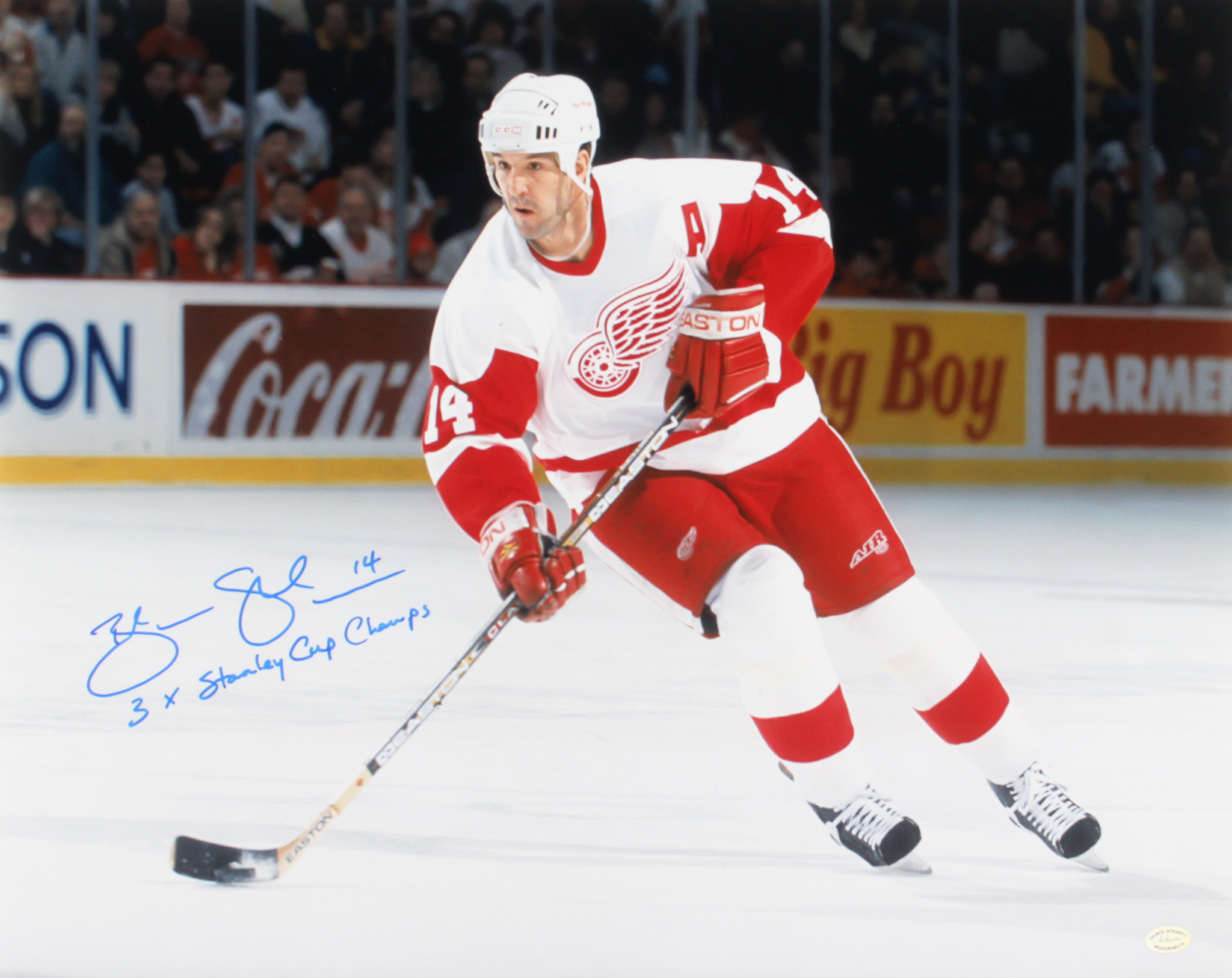 Brendan Shanahan Signed Red Wings 16x20 Photo Inscribed "3x Stanley Cup Champs" (Sports Integrity COA)