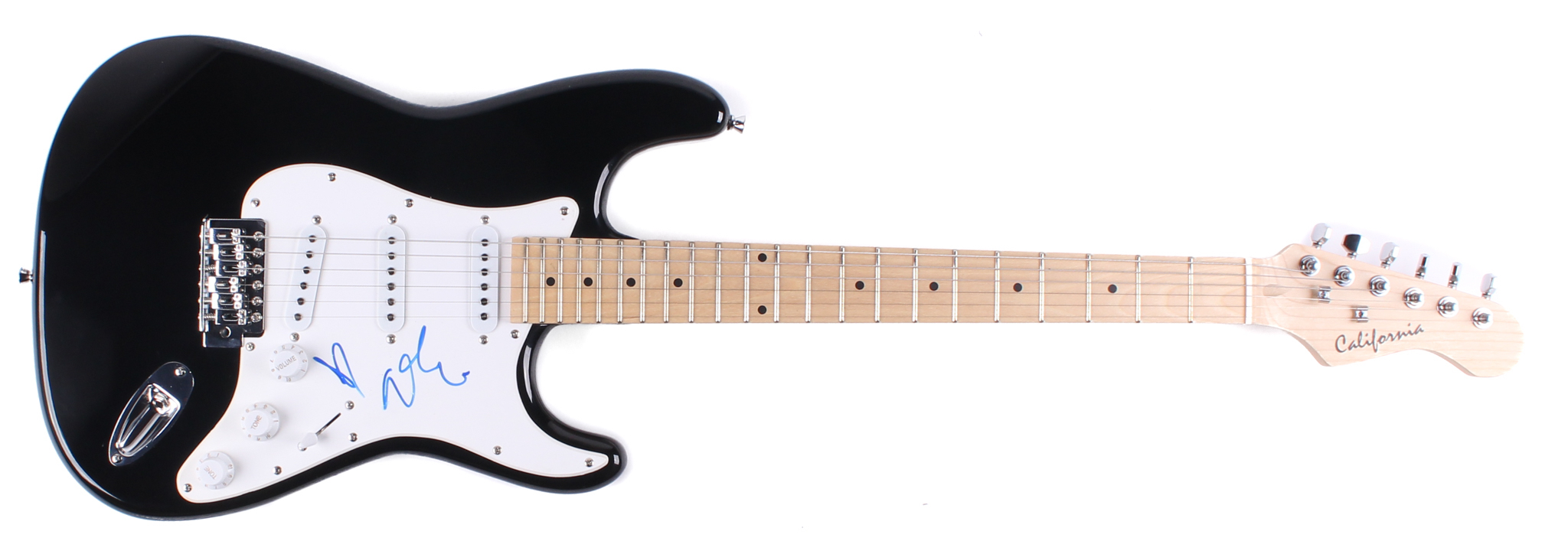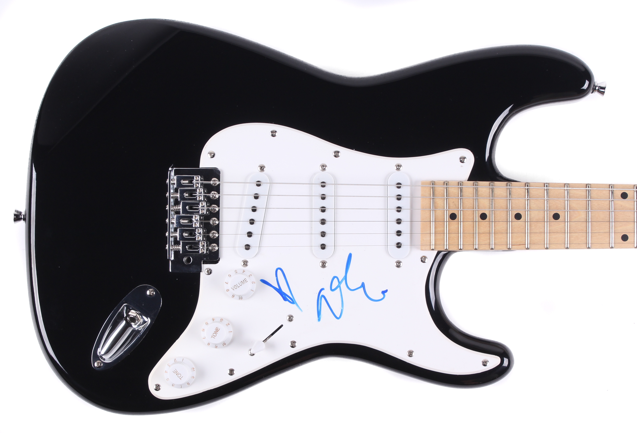 Full-size electric guitar measures 40" in length and has been hand-signed in blue felt-tip pen by Adele.