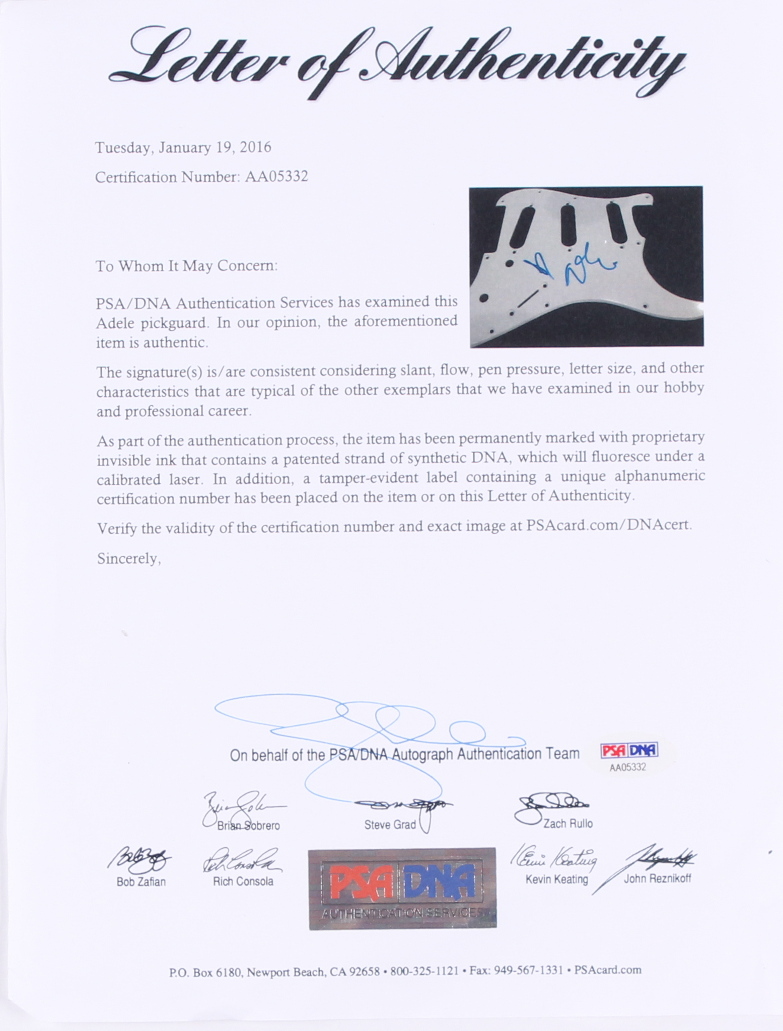 Adele Signed Full-Size Electric Guitar (PSA LOA)