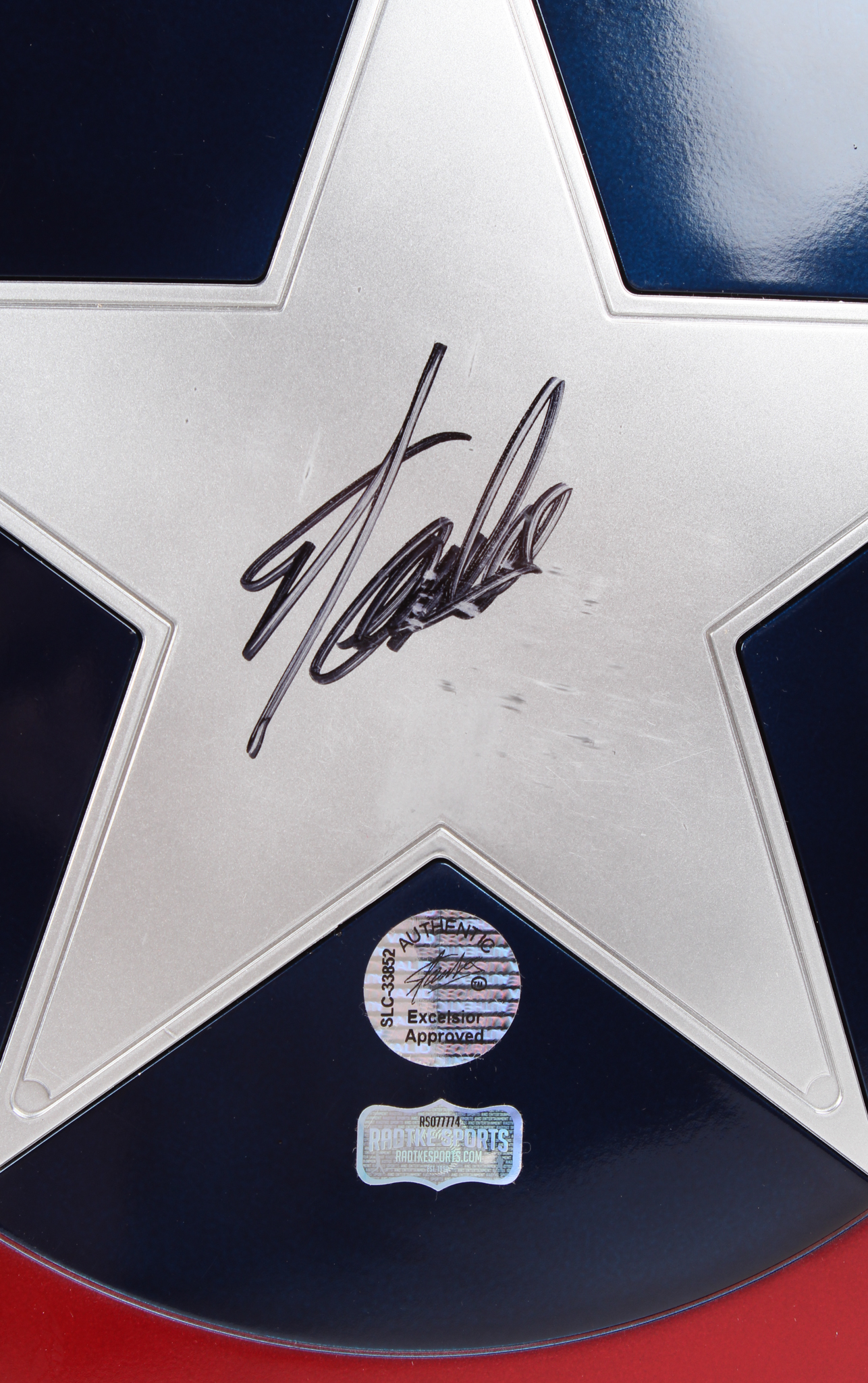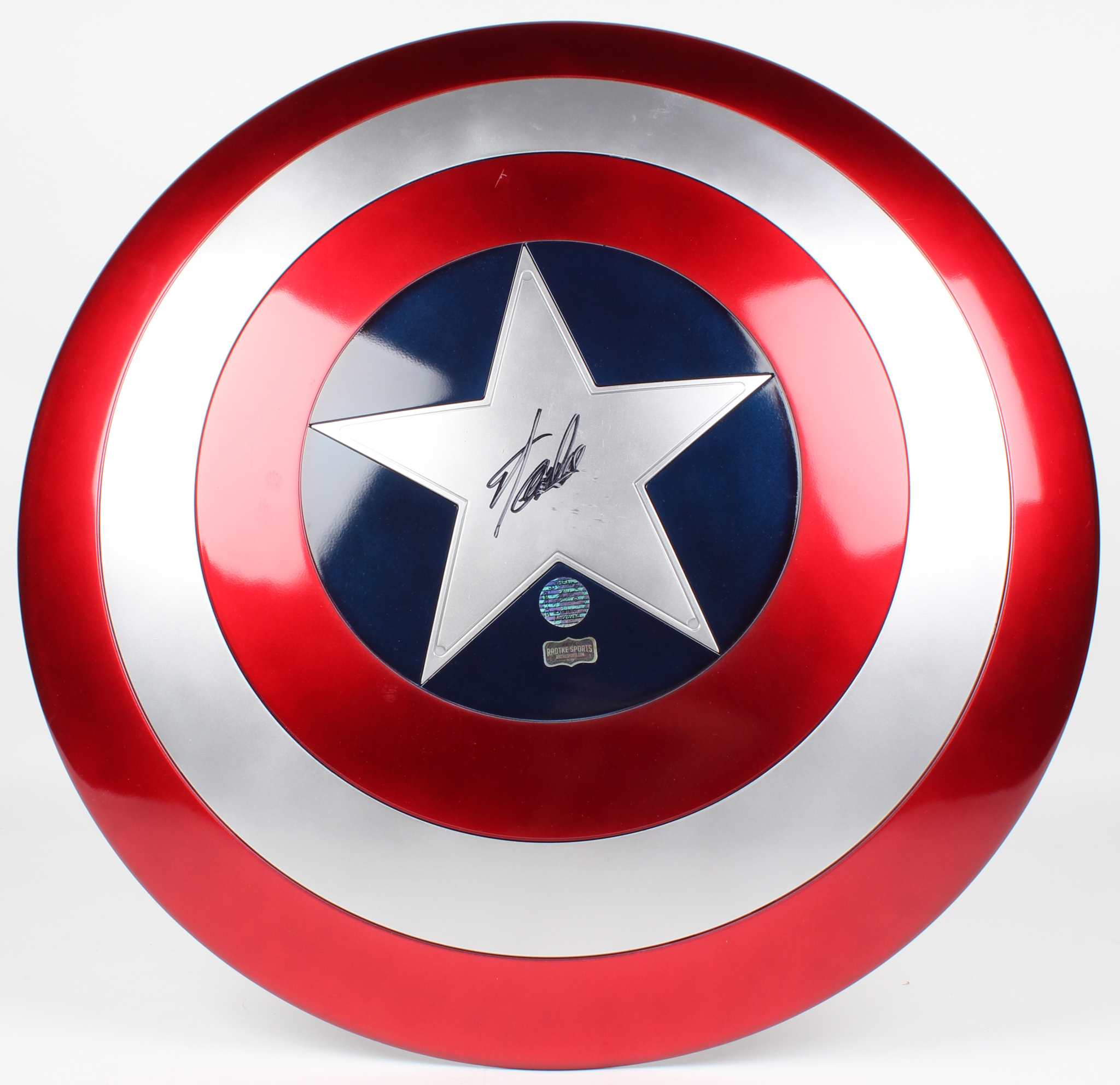 Shield measures approximately 23.5" in diameter and is hand-signed in black felt-tip pen by Stan Lee (Marvel).