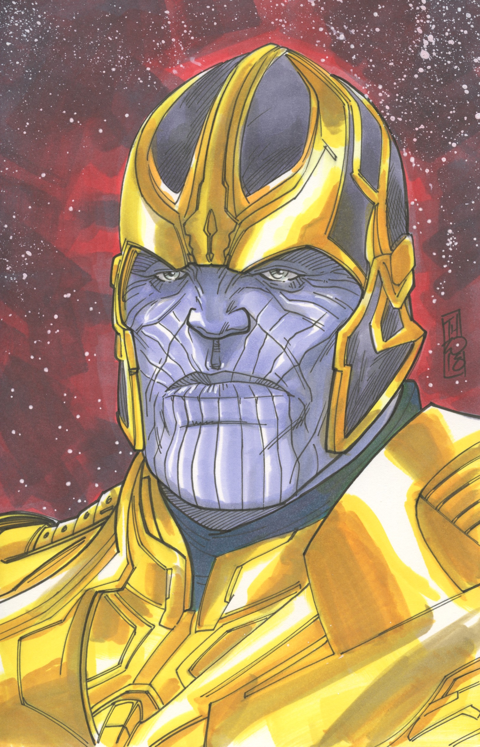 Tom Hodges - Thanos Marvel Signed ORIGINAL 5.5" x 8.5" Color Drawing on Paper (1/1)