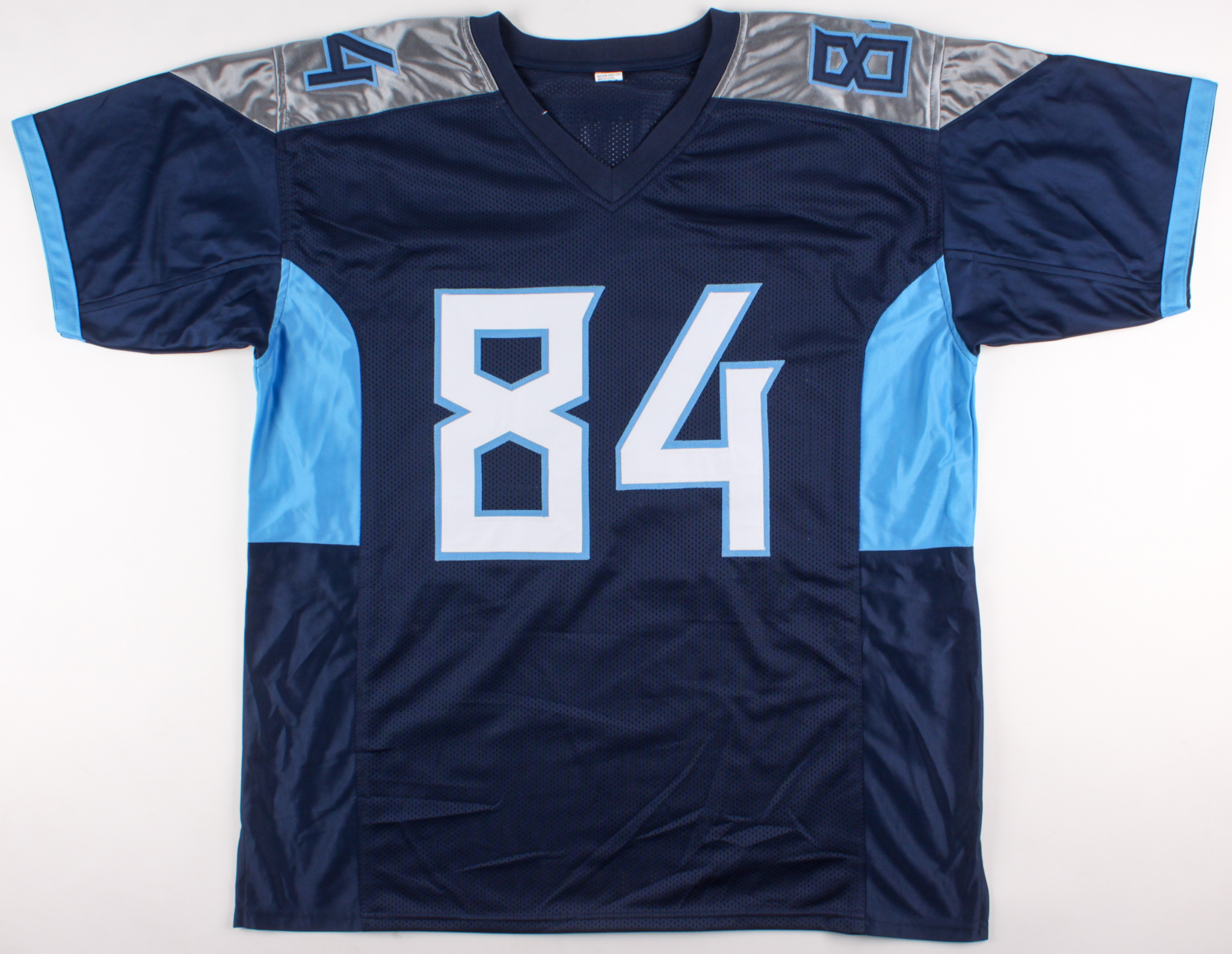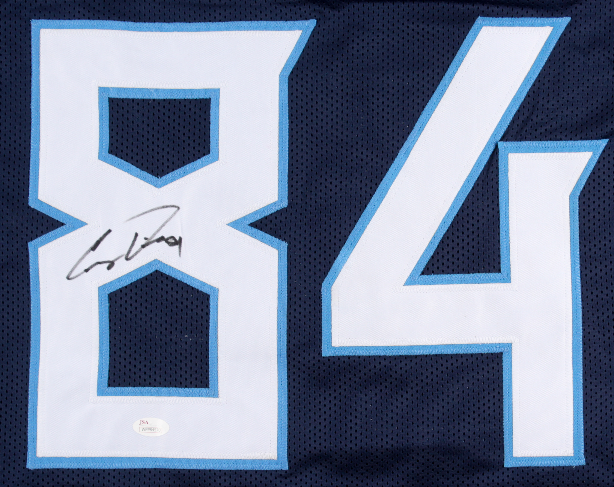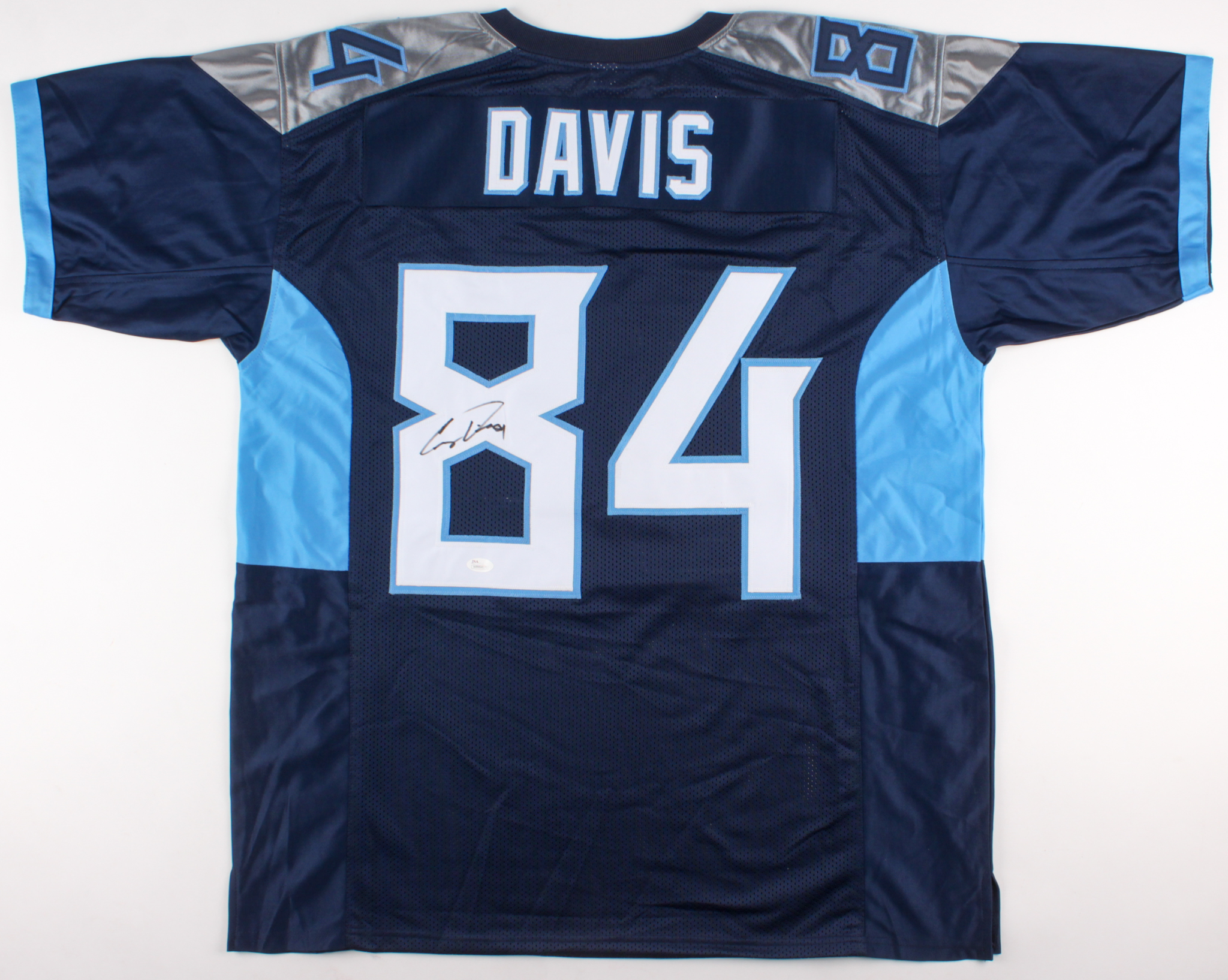 Custom on-field style jersey. Everything is sewn on, size XL. The jersey has been hand-signed in black felt-tip pen by Corey Davis.
