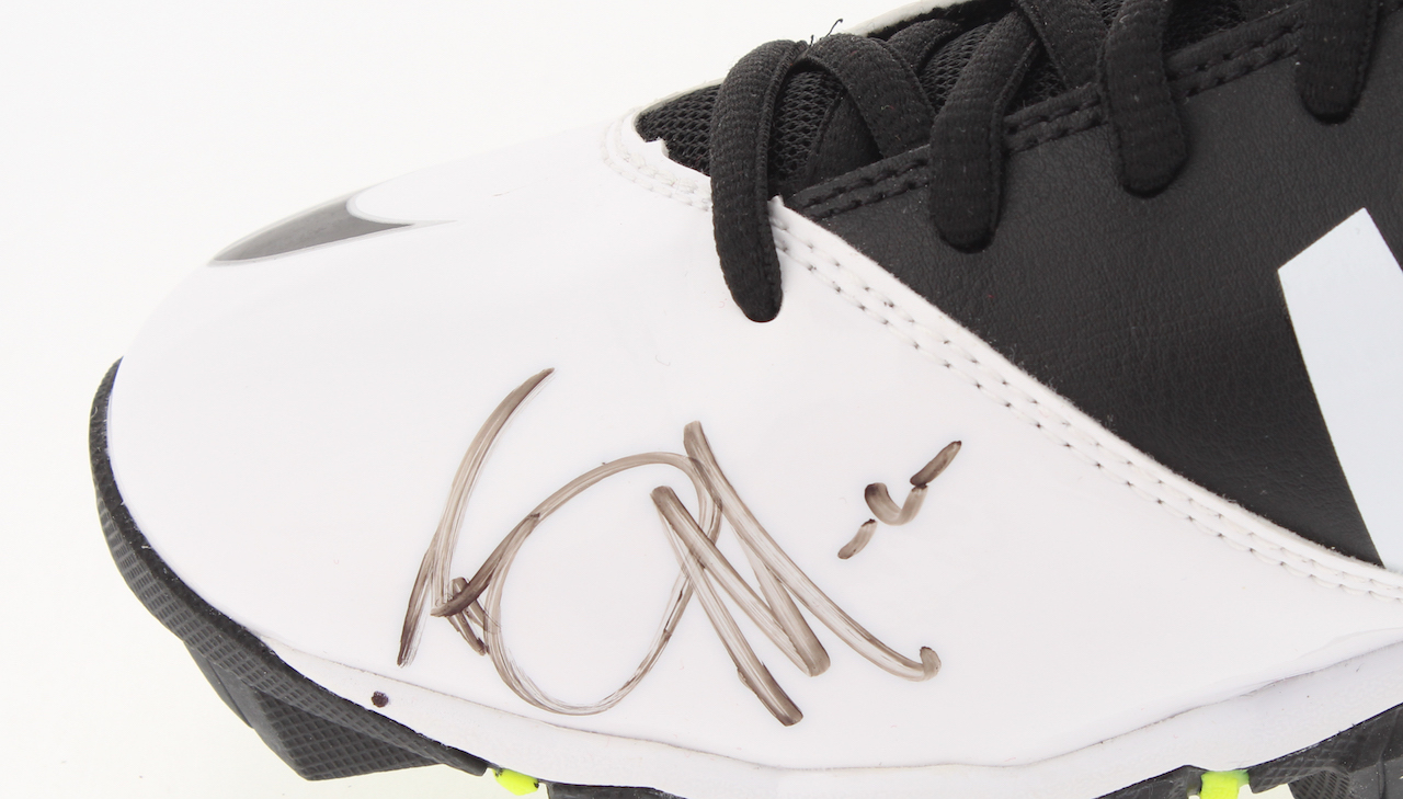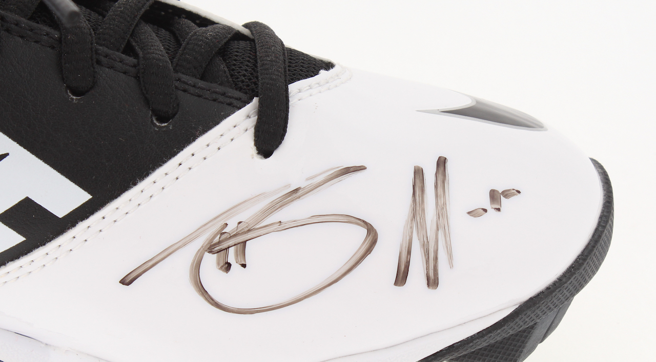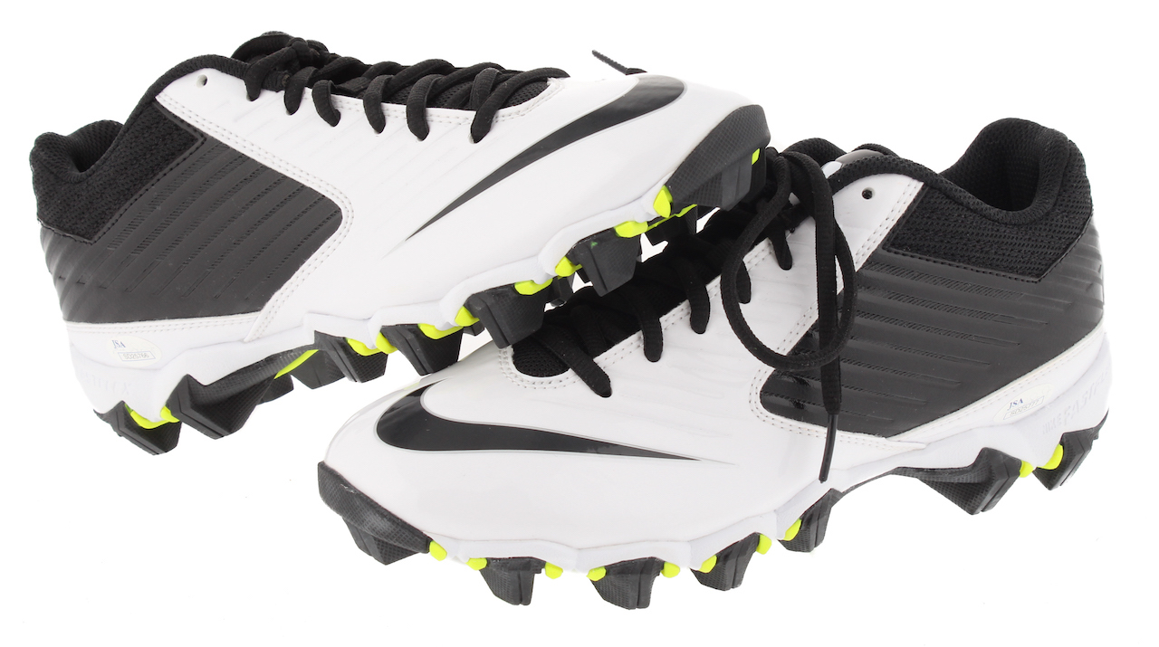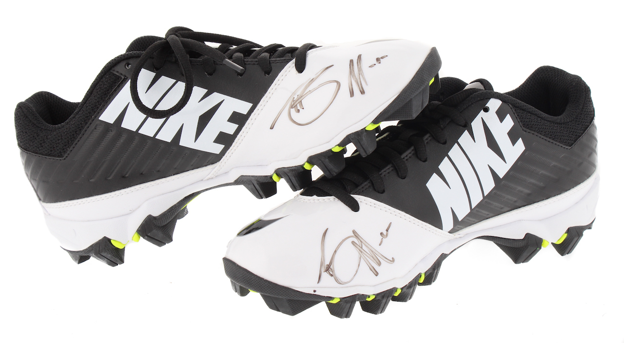 Lot of (2) Nike Fastflex cleats, size 7. Hand-signed in black felt-tip pen by Braxton Miller (Texans).