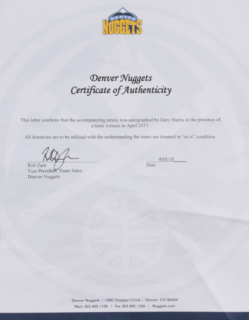 Gary Harris Signed Nuggets Jersey (JSA COA)