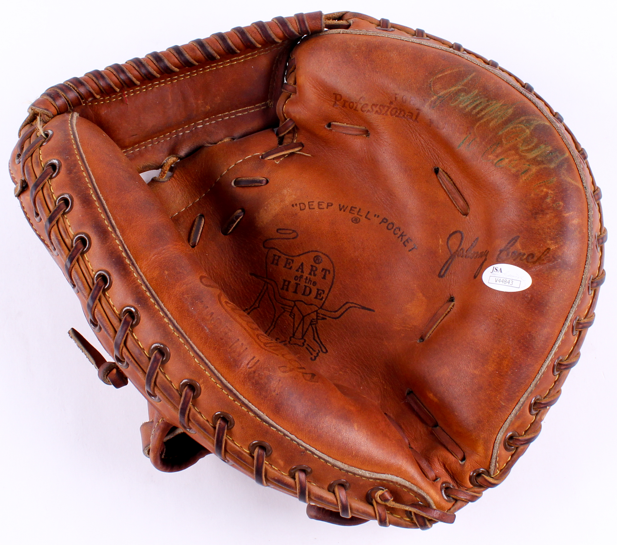 Rawlings Pro RL Baseball Catchers Glove. Hand-signed and inscribed in black ink pen by Johnny Bench (Reds, HOF). Please note, signature is slightly faded due to age.