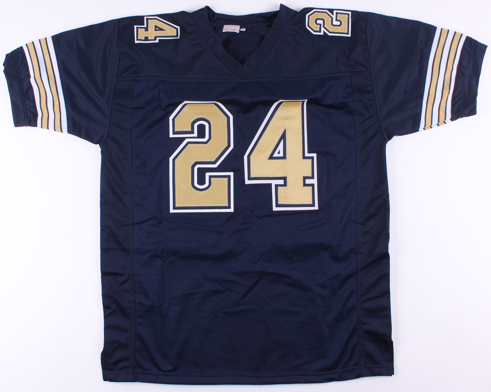 Custom on-field style jersey. Everything sewn on, size XL. Hand-signed and inscribed in black felt-tip pen by James Conner (Steelers).