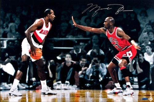 Michael Jordan Signed Bulls "Jordan vs Drexler" 16x24 Photo (UDA COA)