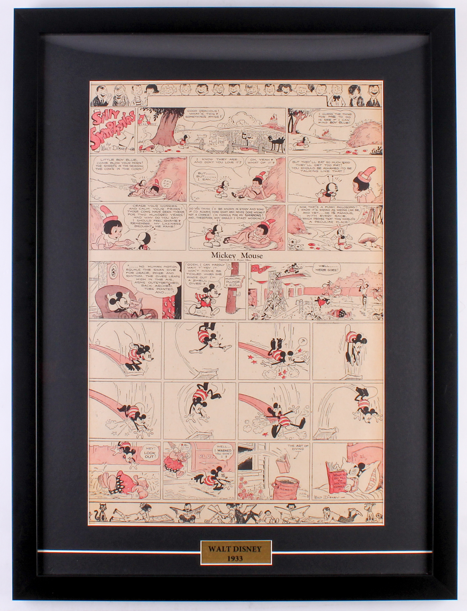 Custom framed 1933 "Silly Symphonies" Original Disney Comic Strip measures approximately 21" x 28" in size.