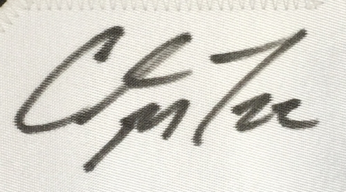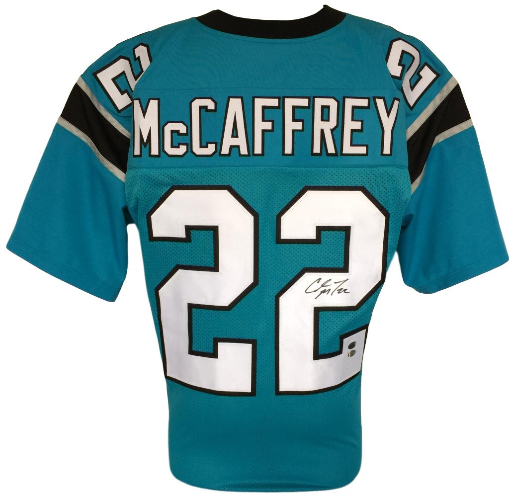 Custom on-field style jersey with everything sewn on, size XL. Jersey has been hand-signed in black felt-tip pen by Christian McCaffrey.