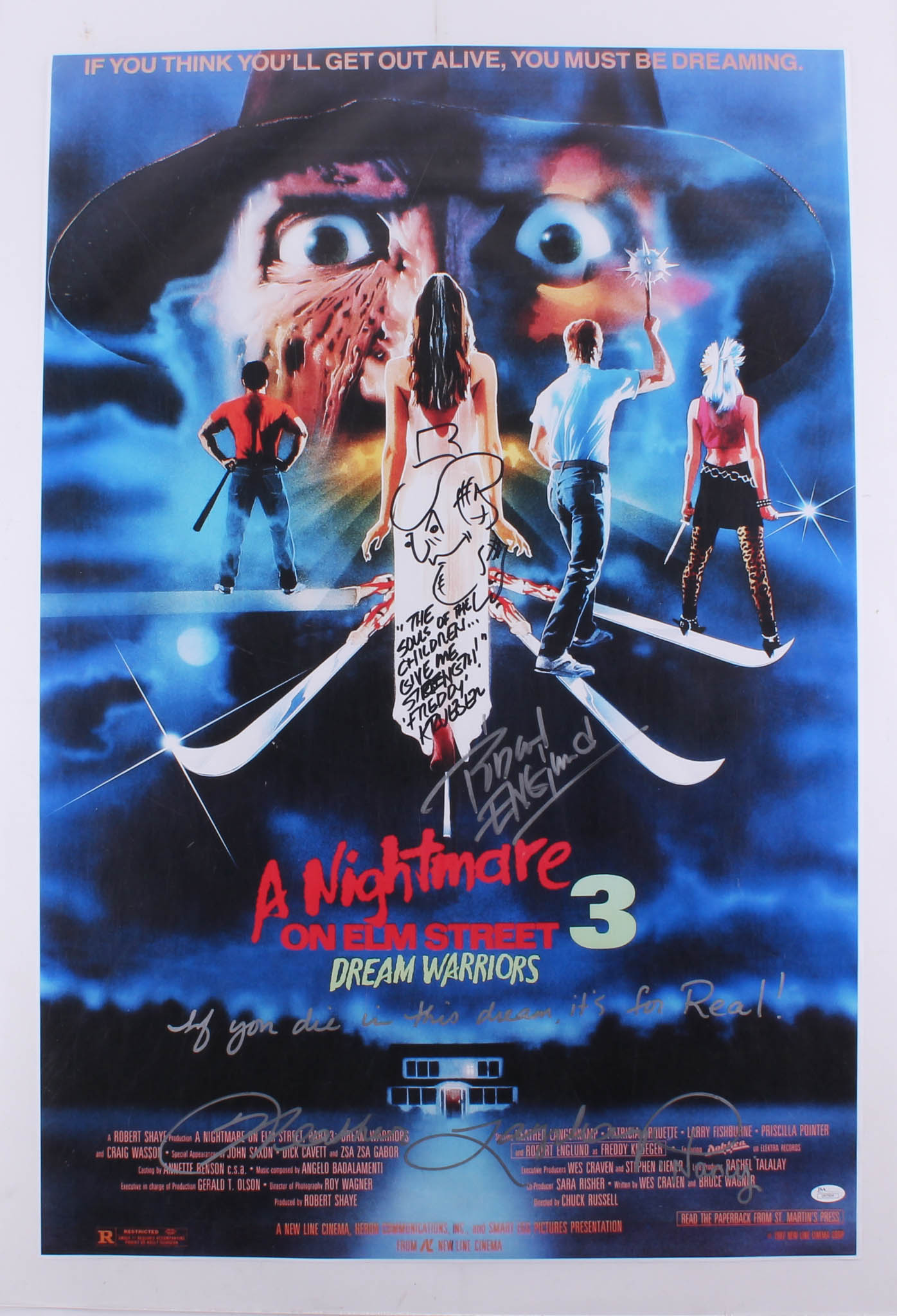 Robert Englund & Heather Langenkamp Signed "A Nightmare on Elm Street 3: Dream Warriors" 24x36 Poster with Inscriptions (JSA COA)