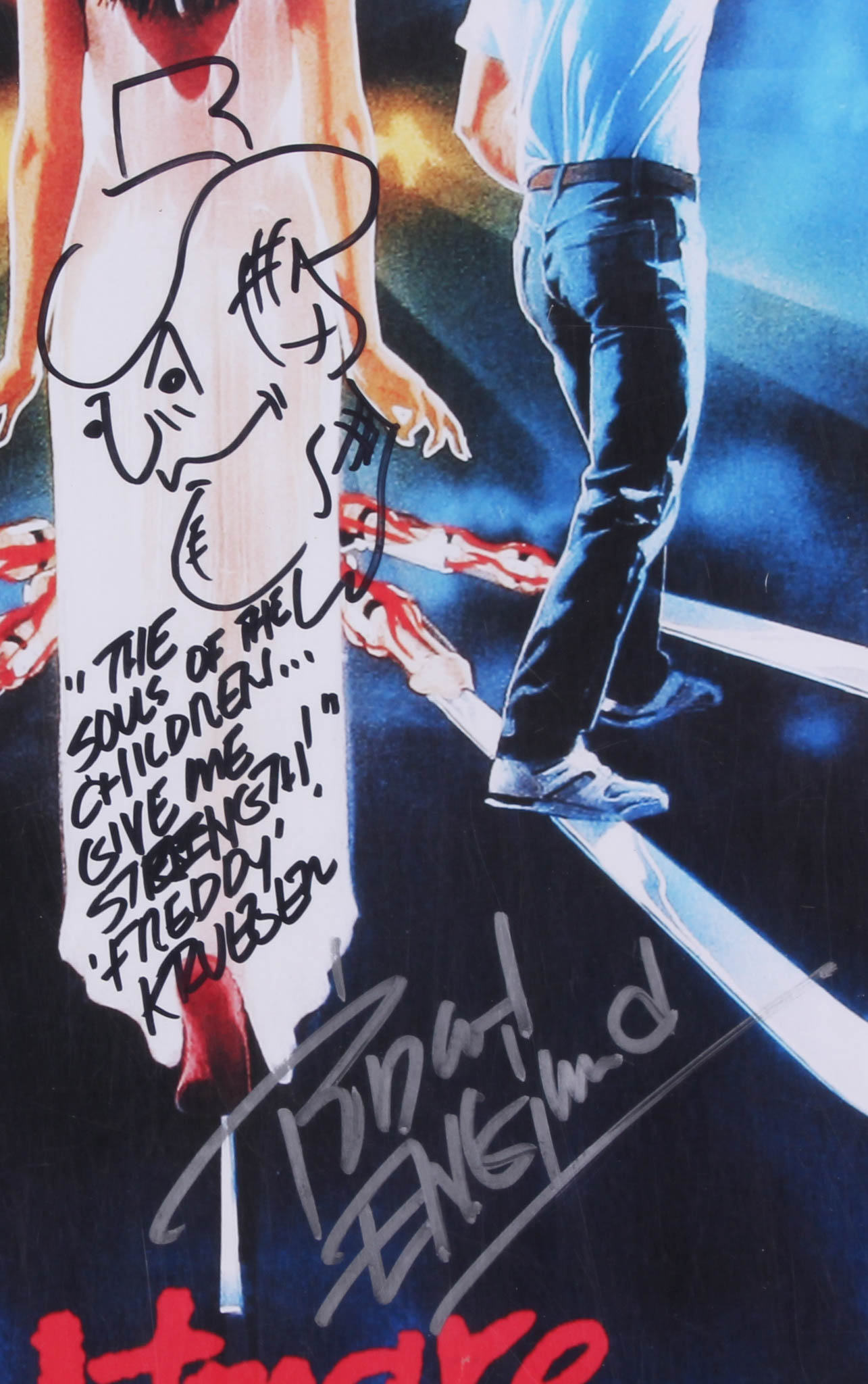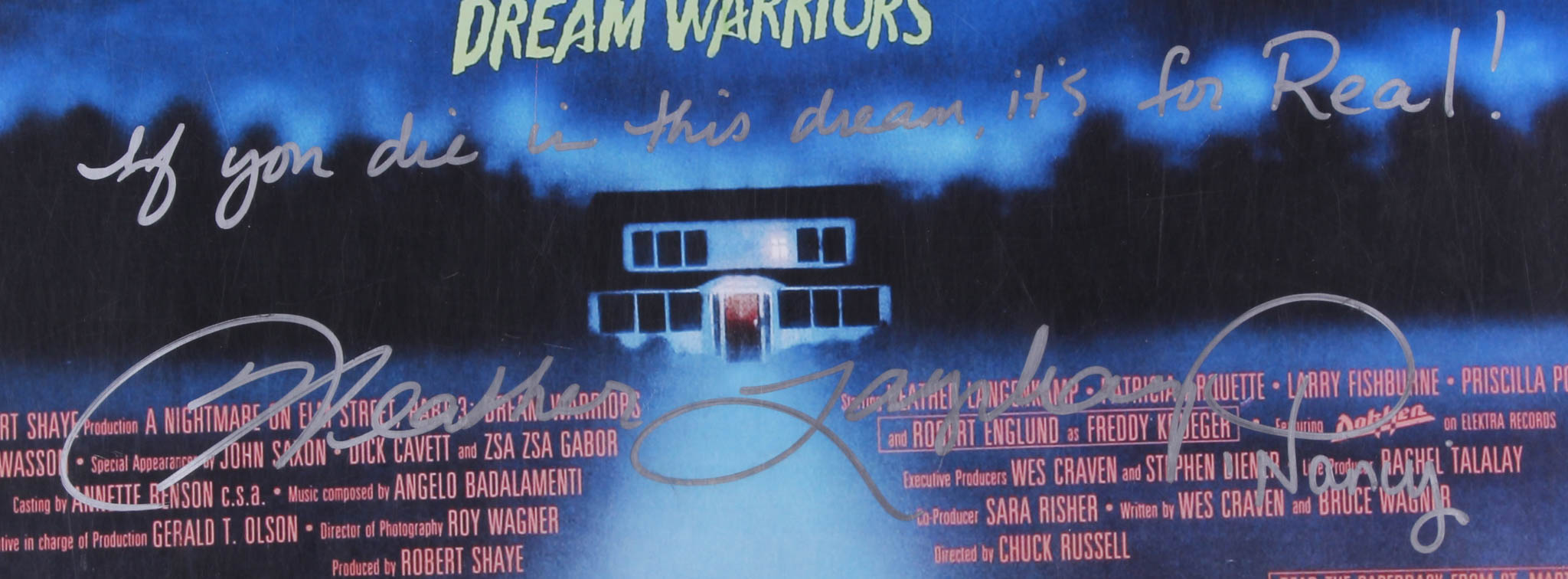 Poster measures 24" x 36" in size and has been hand-signed and inscribed in black felt-tip pen and silver paint pen by Robert Englund and Heather Langenkamp.