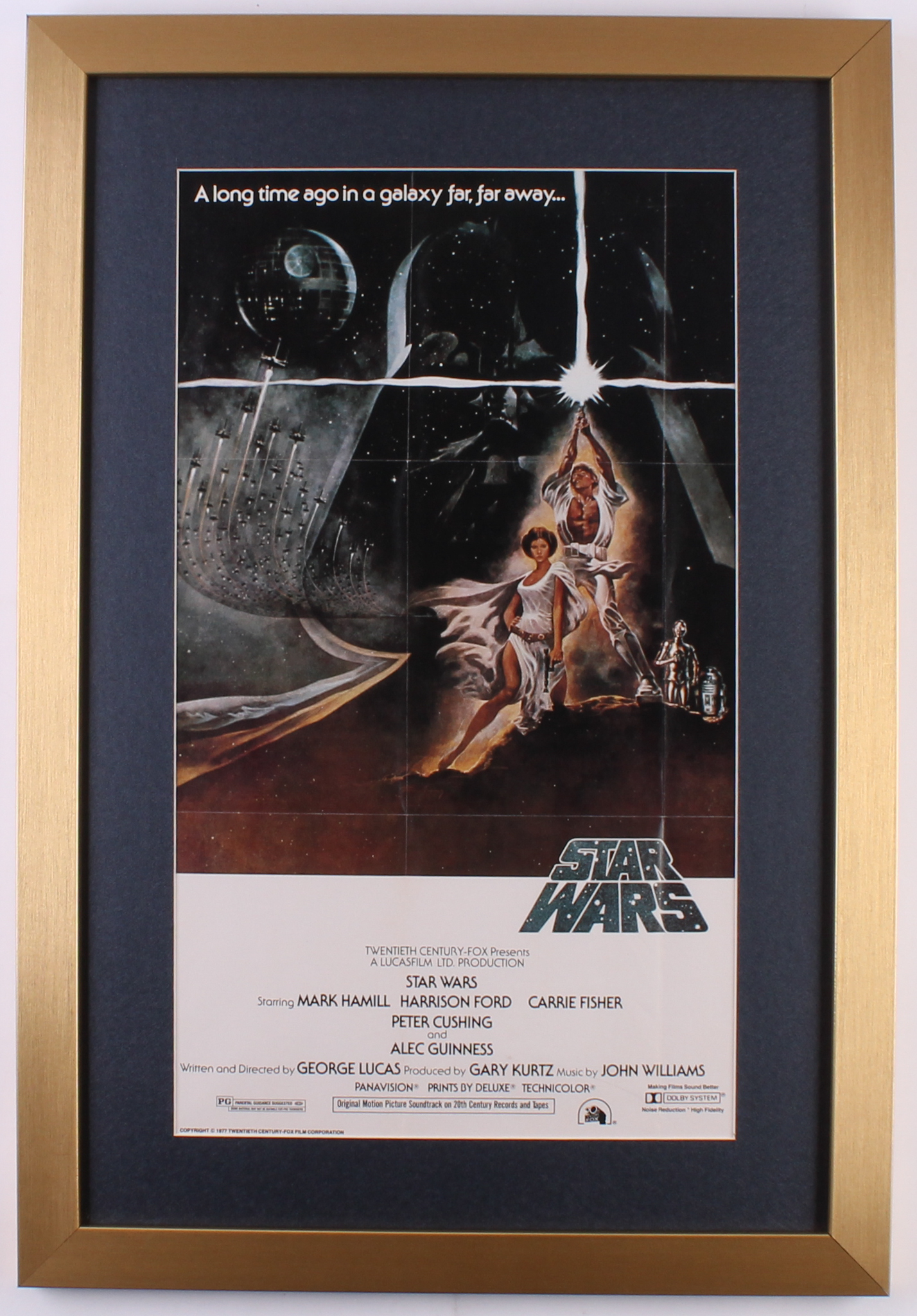 Custom frame measures 17" x 25" in size and features a movie poster from the film "Star Wars: A New Hope" (1977).