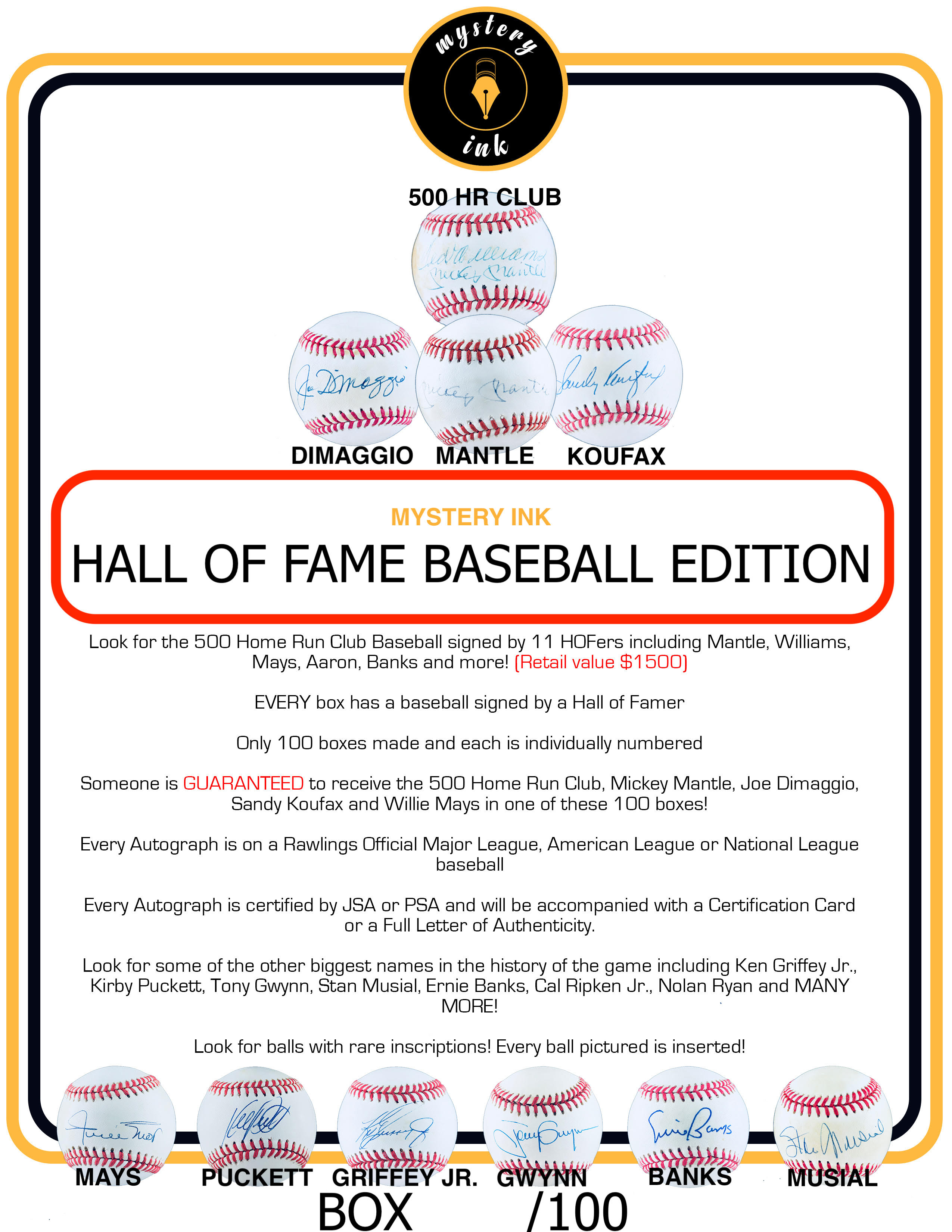 EVERY box has a baseball signed by a Hall of Famer
