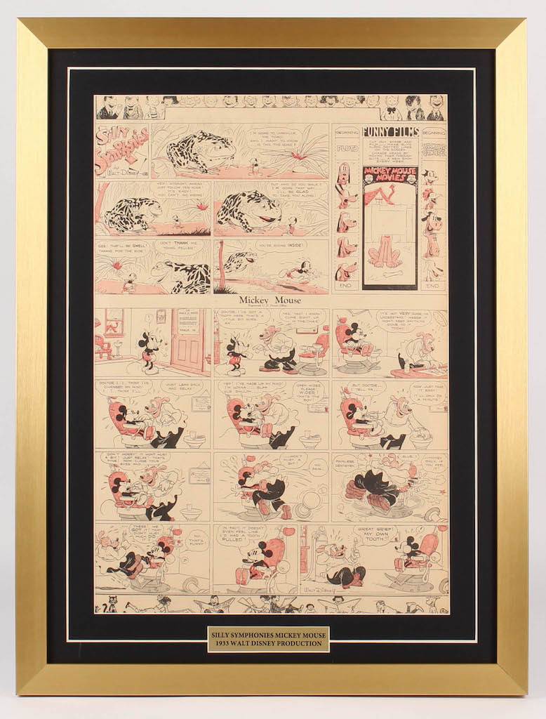 Custom framed 1933 "Silly Symphonies" Original Disney Comic Strip measures approximately 20" x 26.5" in size.