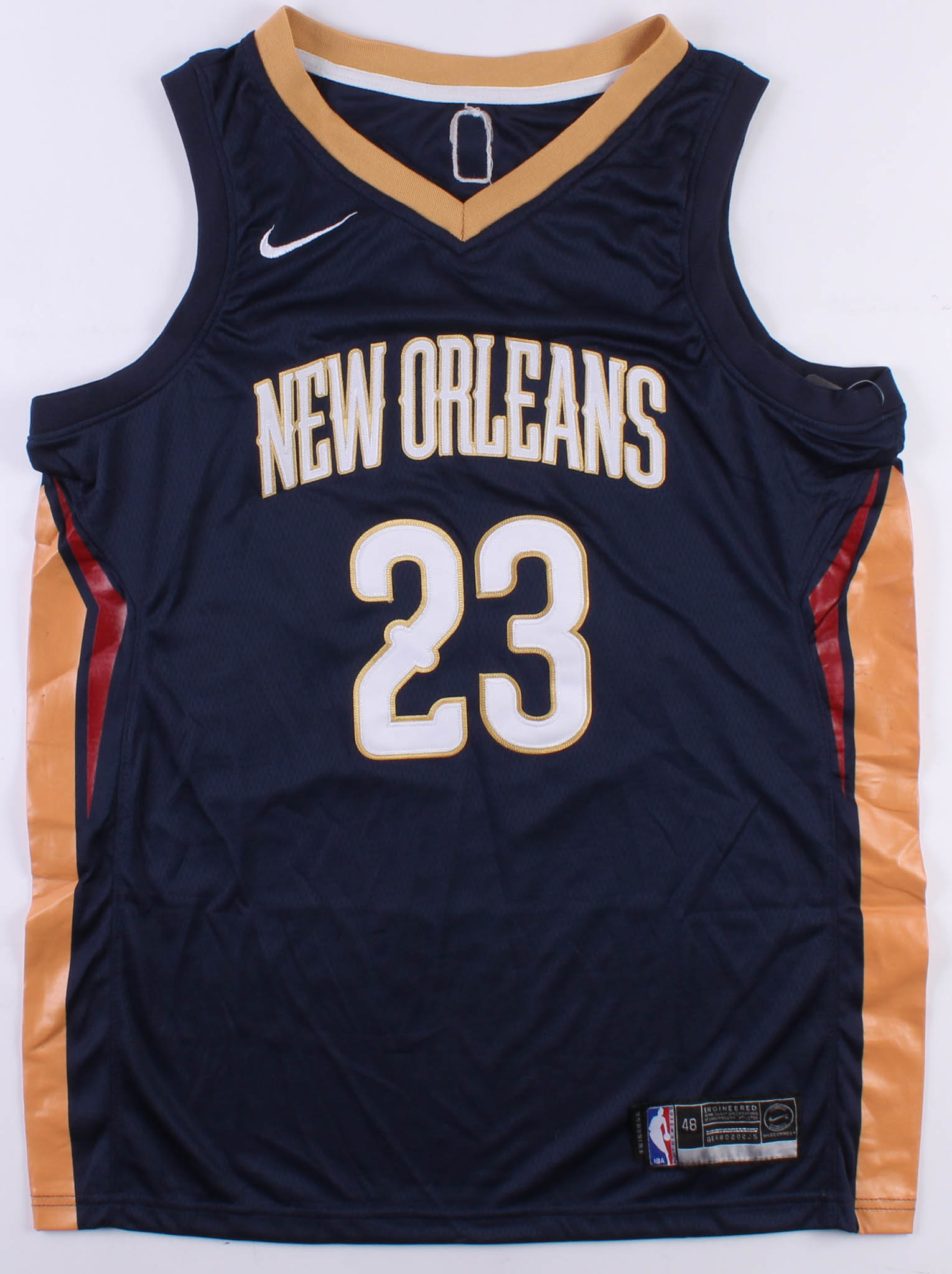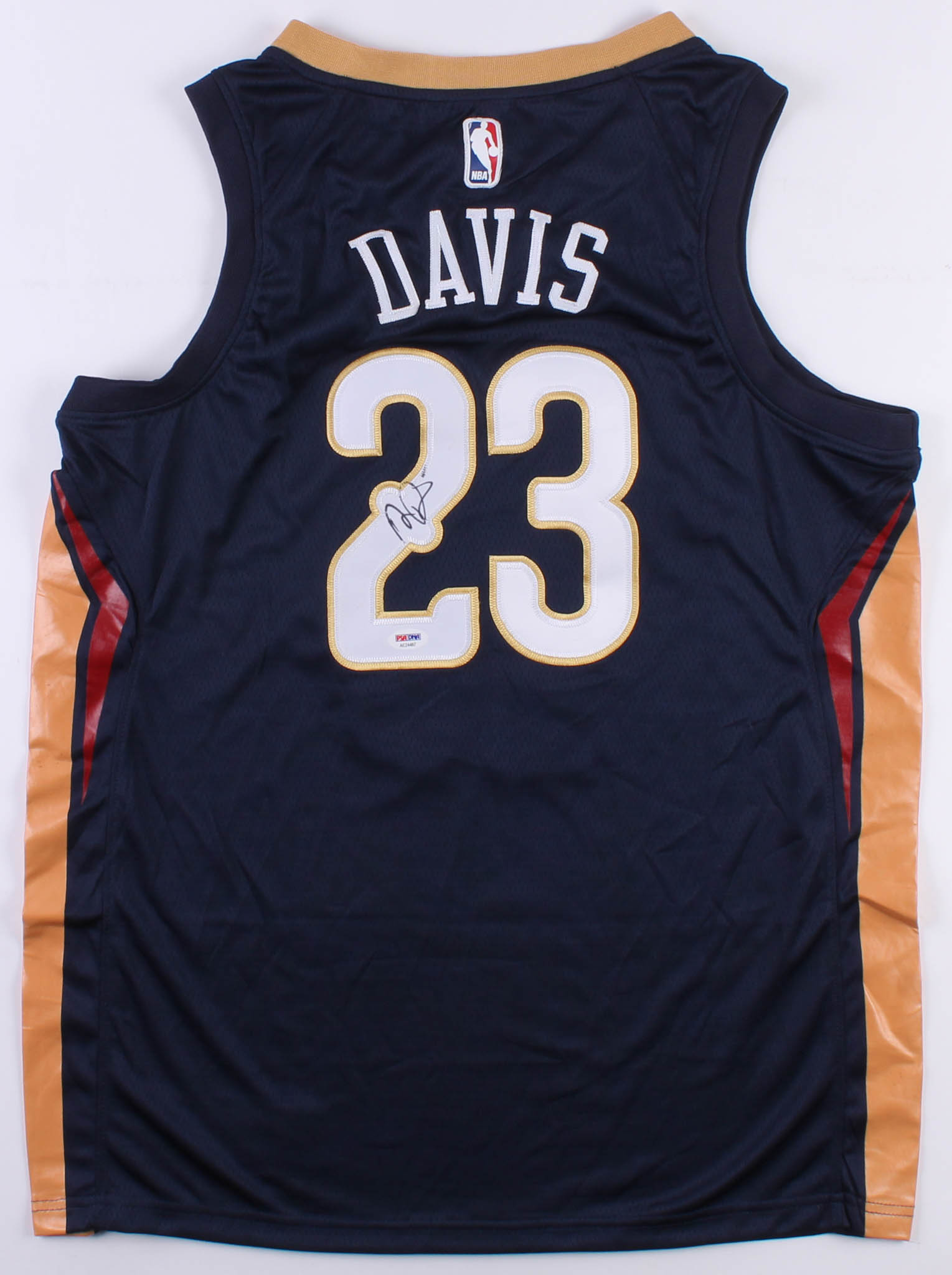 Nike on-court style jersey. Everything is sewn on, size 48. Hand-signed in black felt-tip pen by Anthony Davis.