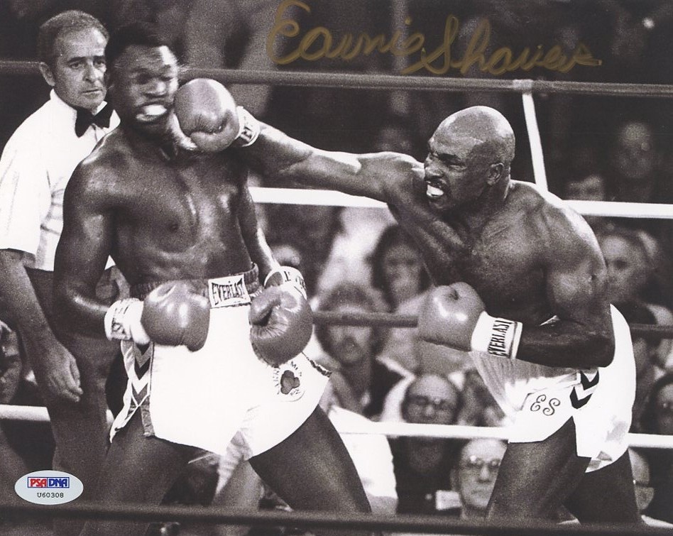 Earnie Shavers Signed 8x10 Photo vs. Larry Holmes (PSA COA)