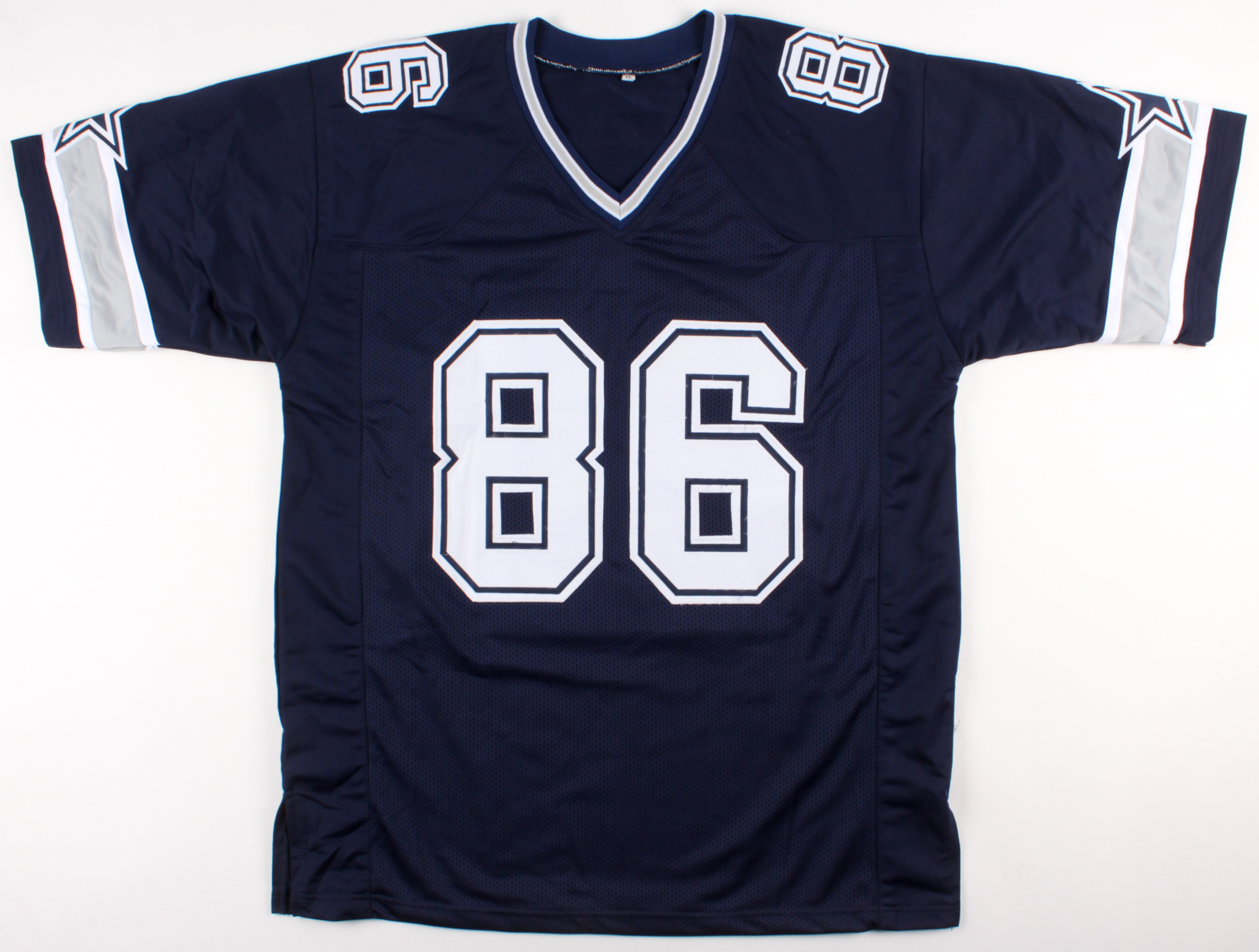 Custom on-field style jersey. Everything sewn on, size XL. Hand-signed in black felt-tip pen by Dalton Schultz.