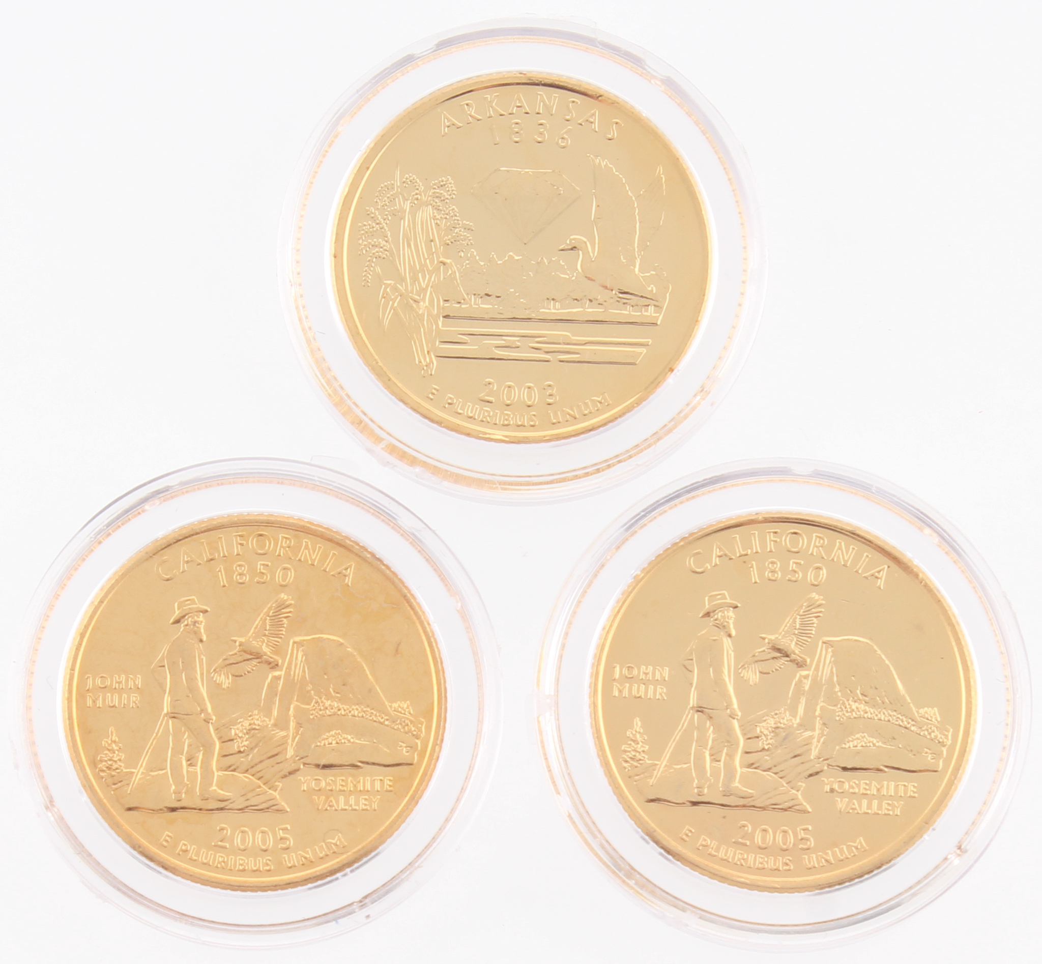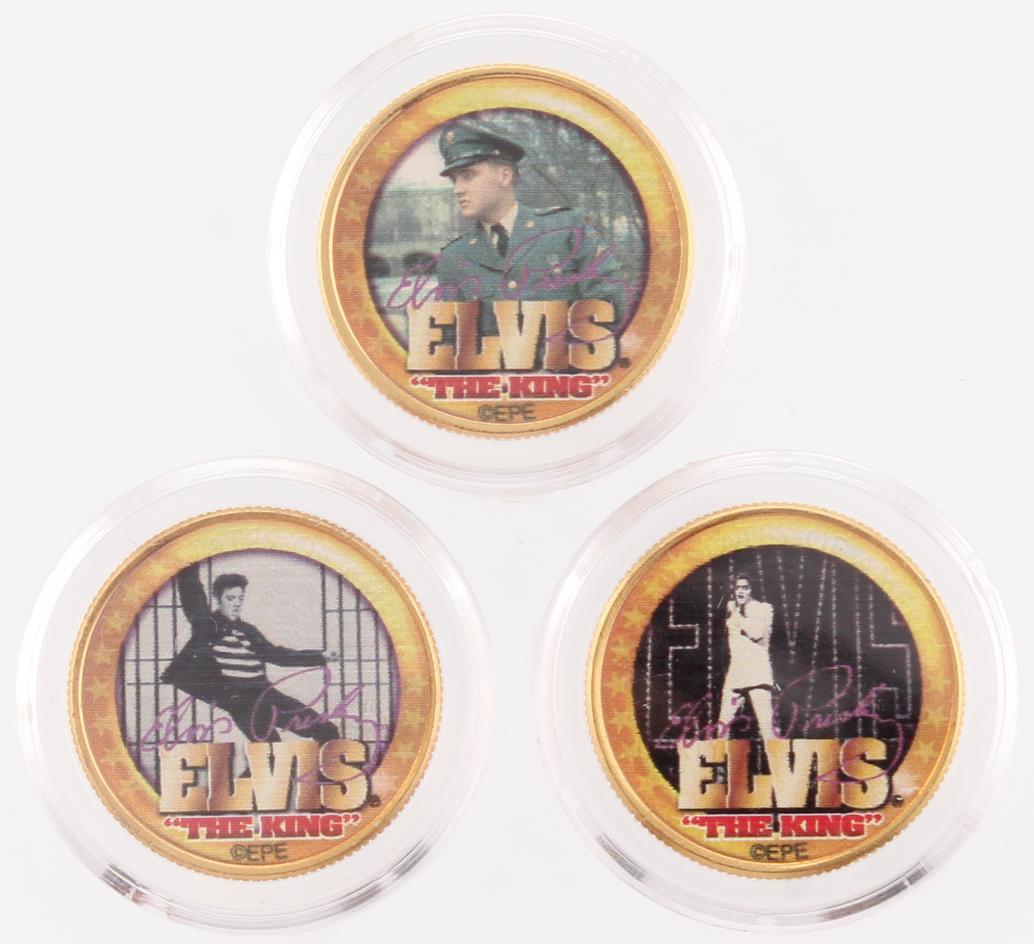 Set of (3) Elvis Presley Colorized 24K Gold Plated Colorized Quarters