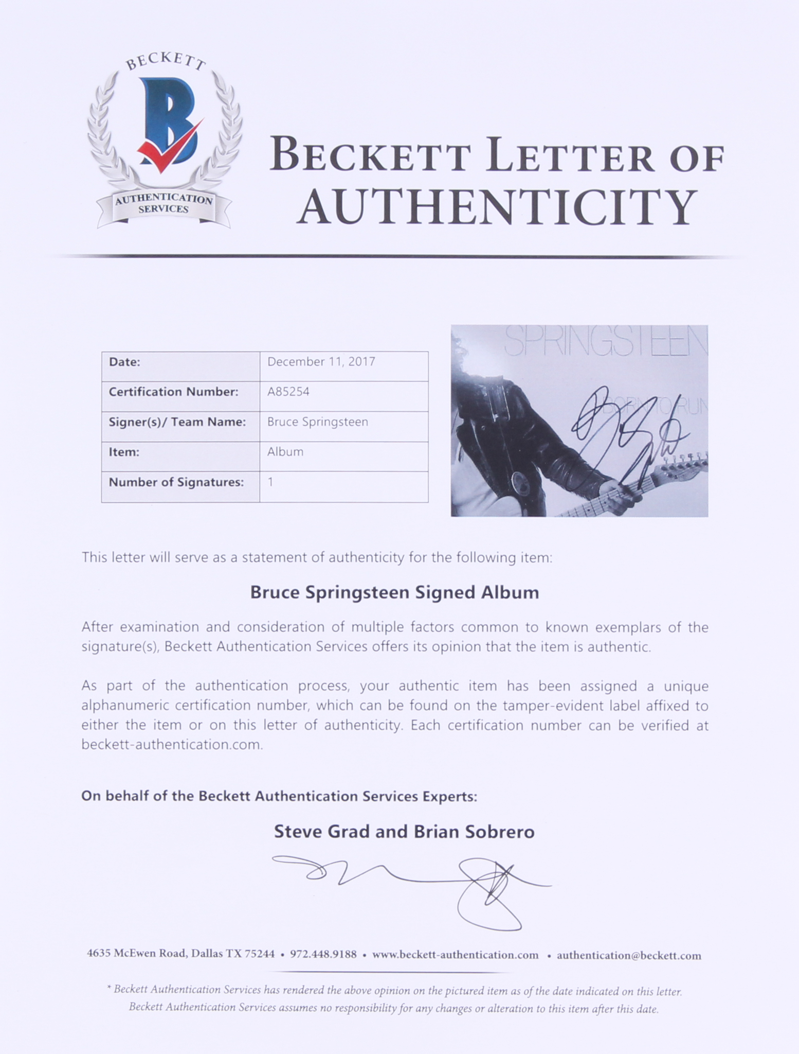 Bruce Springsteen Signed "Born to Run" Vinyl Record Album (Beckett LOA)