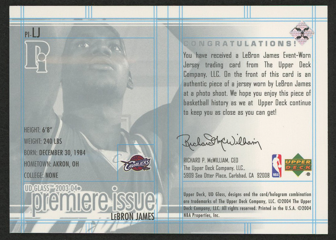 2003-04 UD Glass Premier Issue Jerseys #PILJ LeBron James