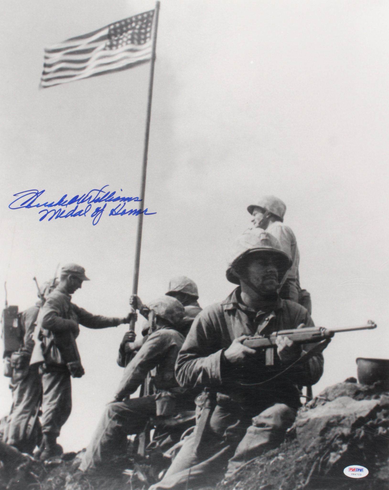 Hershel W. Williams Signed "Raising The Flag On Iwo Jima" 16x20 Photo Inscribed "Medal of Honor" (PSA COA)