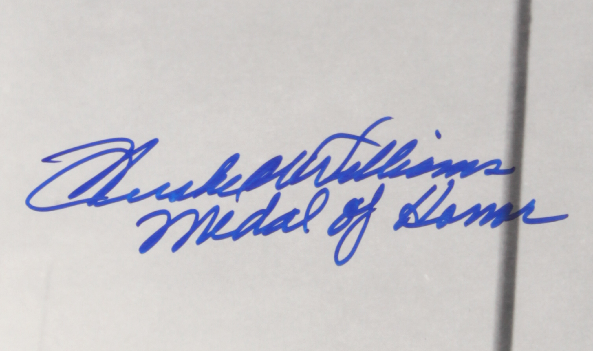 Photo measures 16" x 20" in size and has been hand-signed in blue felt-tip pen by Hershel W. Williams.