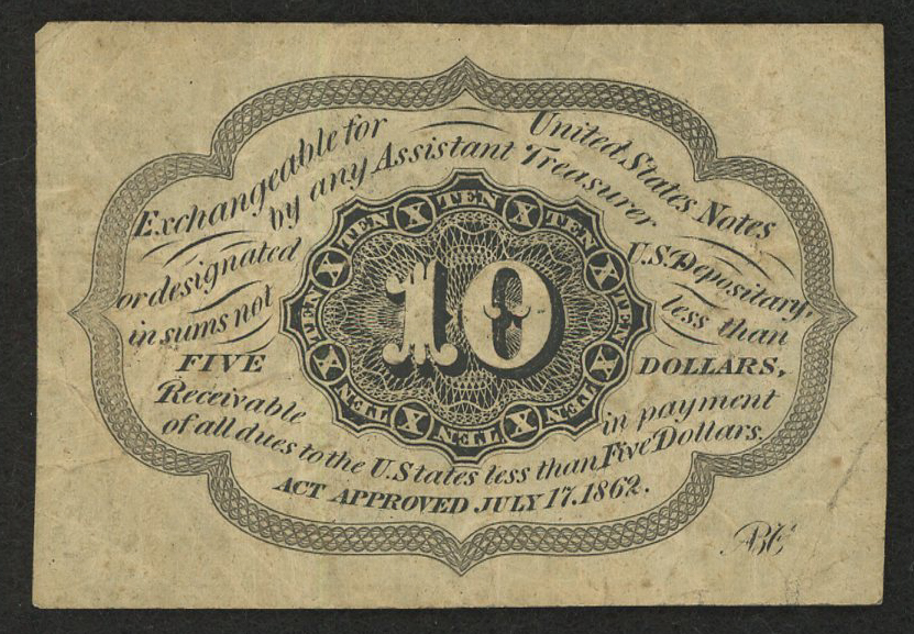 1862 United States 10¢ Ten Cents "Postal Currency" Fractional Bank Note