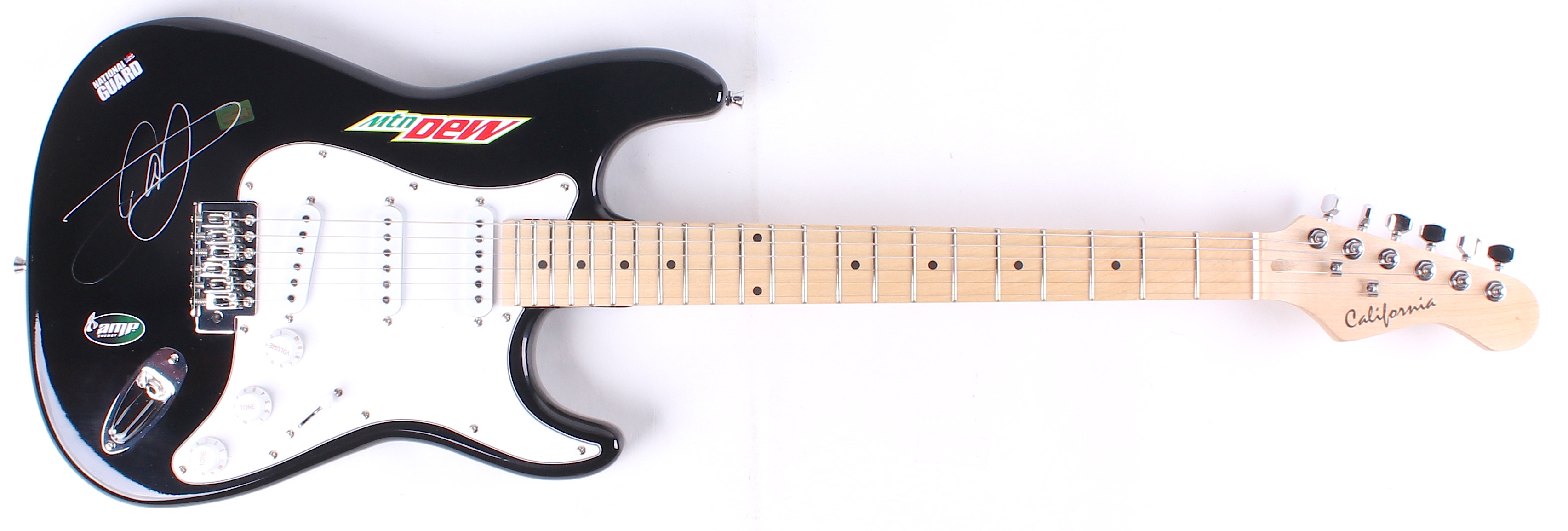 Full-size customized electric guitar hand-signed hand-signed in silver paint pen by Dale Earnhardt Jr.