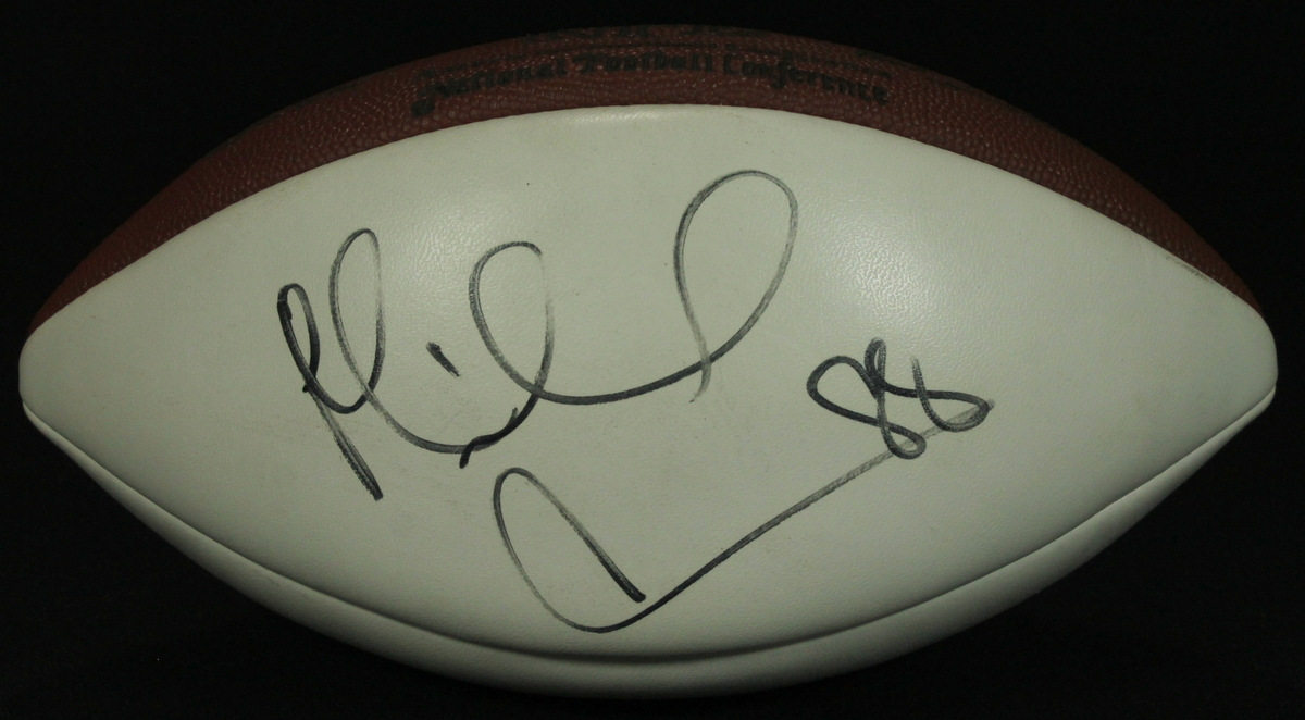 Wilson white panel football. Hand-signed in black felt-tip pen by Michael Irvin (Cowboys HOF). The autograph includes an official James Spence Authentication (JSA) hologram and matching COA for authenticity purposes.