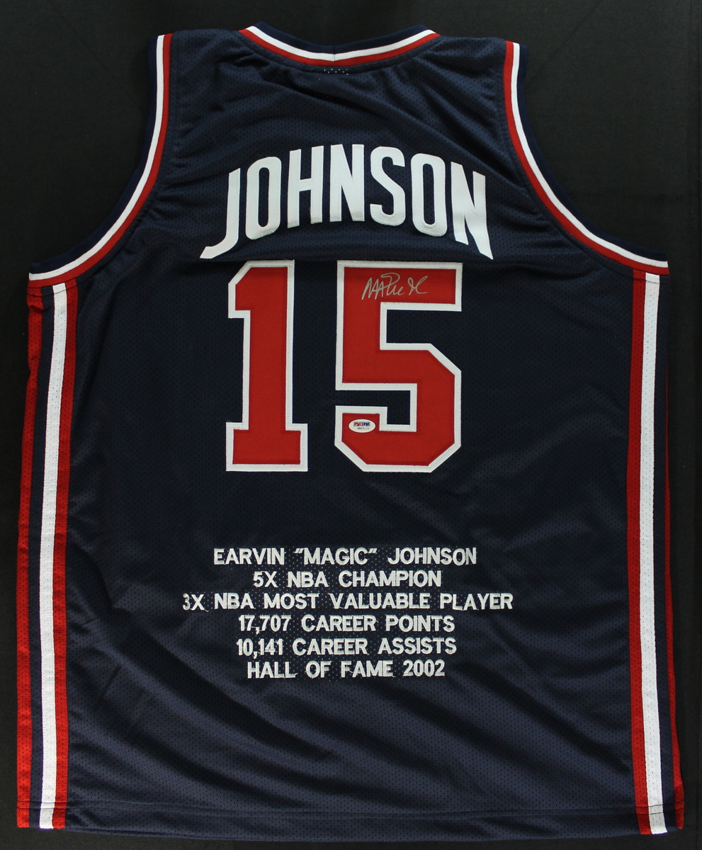 Magic Johnson Signed Team USA "Dream Team" Stat Jersey (PSA COA)