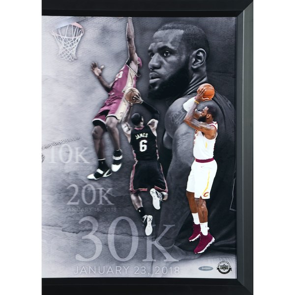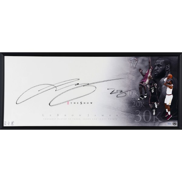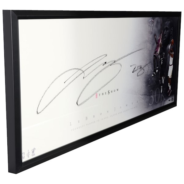 This framed 46" x 20" photograph has been personally hand-signed by LeBron James and measures to an overall size of 20" x 46". It includes a tamper-proof hologram and a certificate of authenticity from Upper Deck. This is a limited edition of 30.