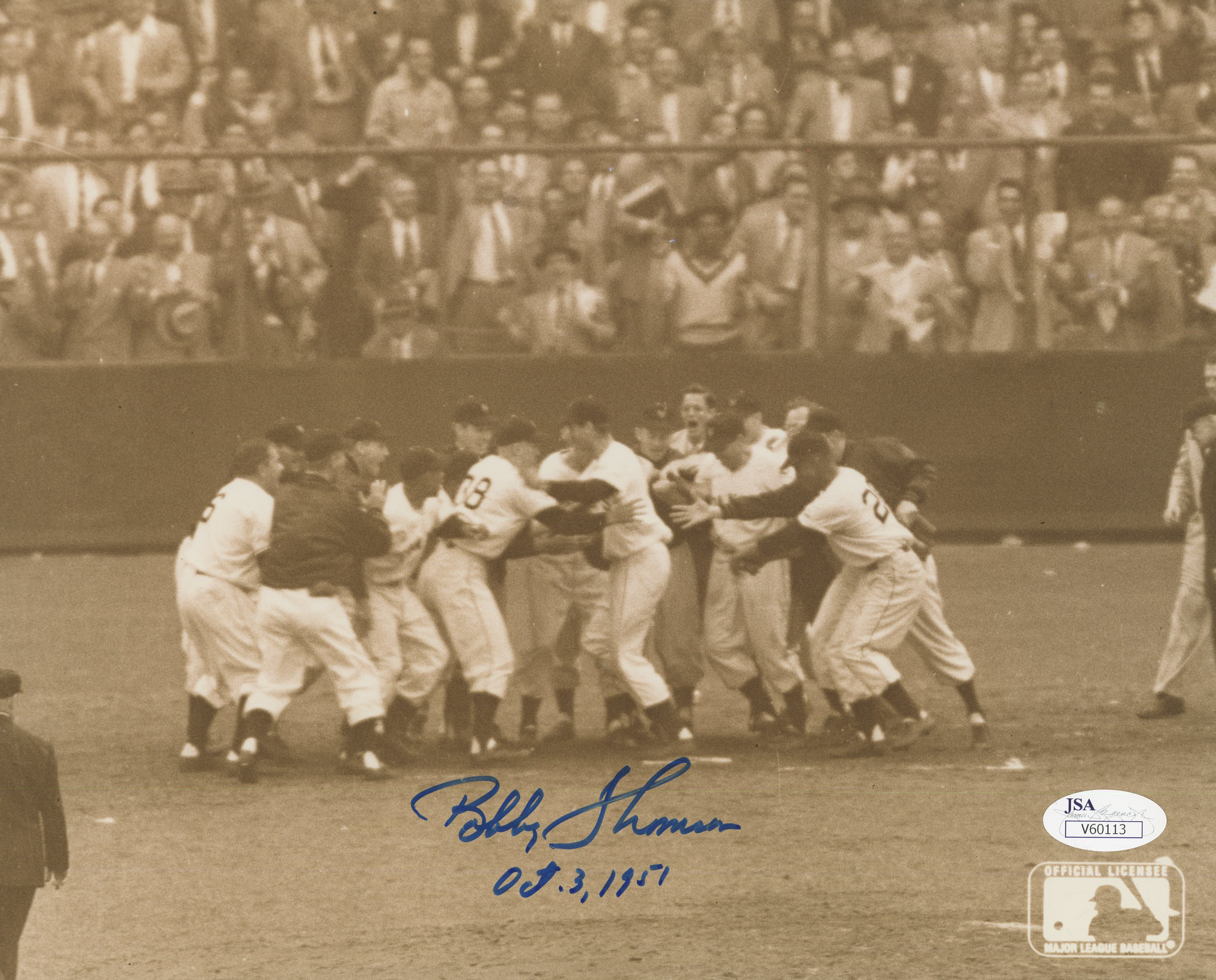 Bobby Thomson Signed "The Shot Heard 'Round The World" 8x10 Photo Inscribed "Oct. 3, 1951" (JSA COA)