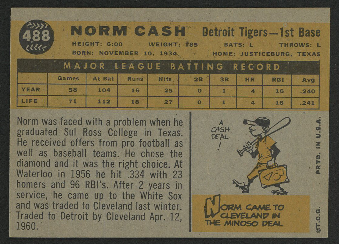1960 Topps #488 Norm Cash