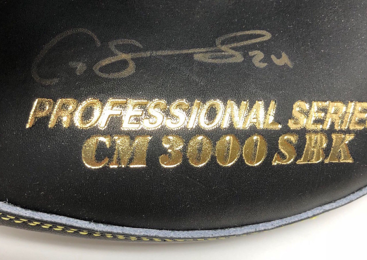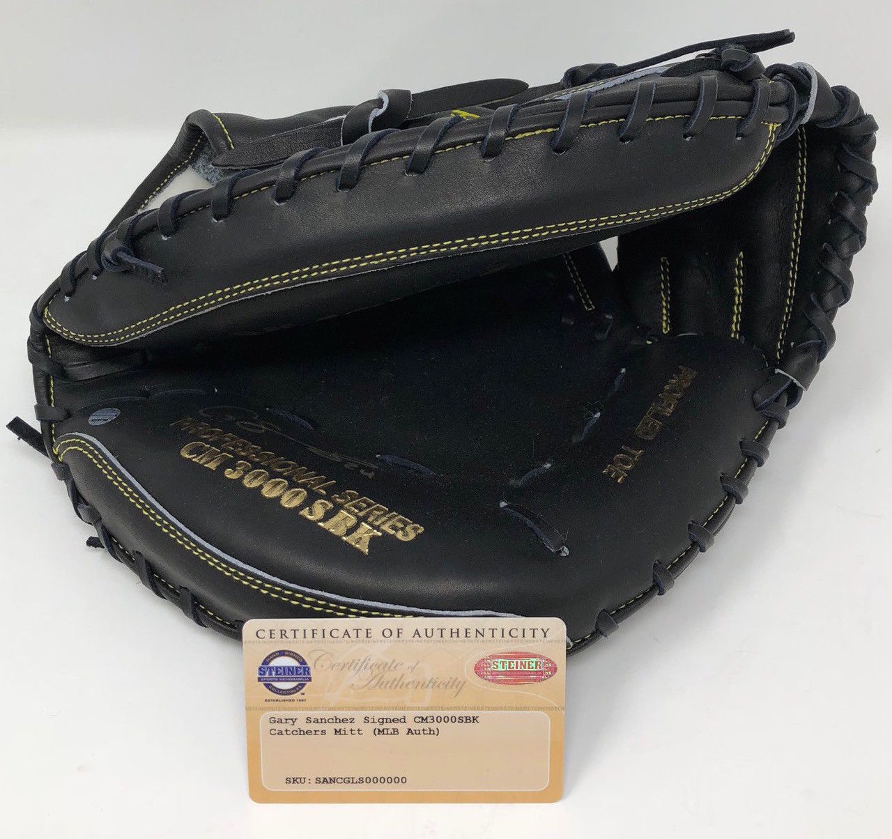 CM 3000 SBK game model catchers glove has been hand-signed in gold paint pen by Gary Sanchez (New York Yankees).