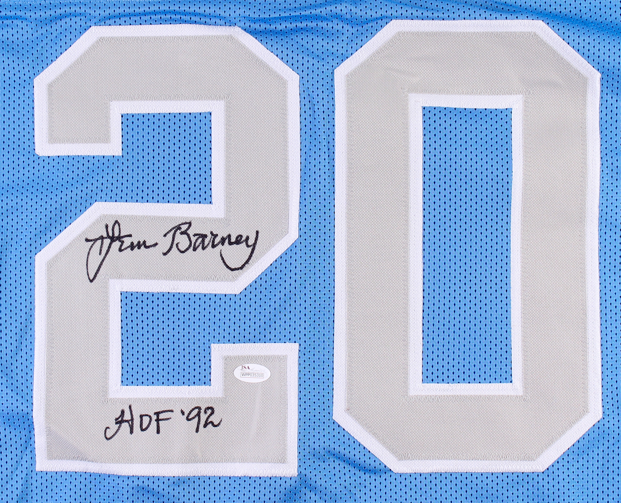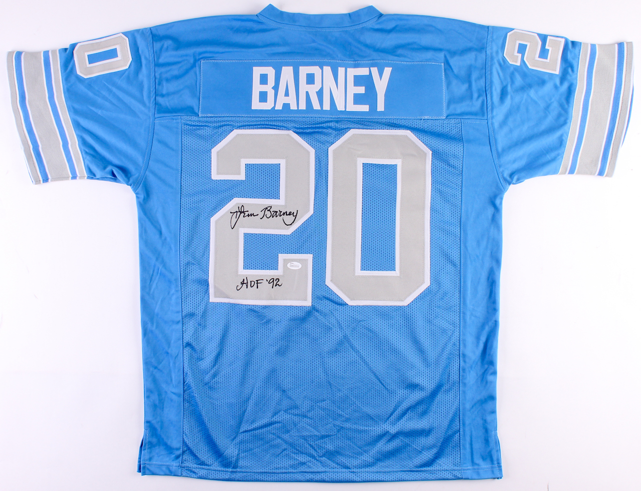 Lem Barney Signed Lions Jersey Inscribed "HOF '92" (JSA COA)
