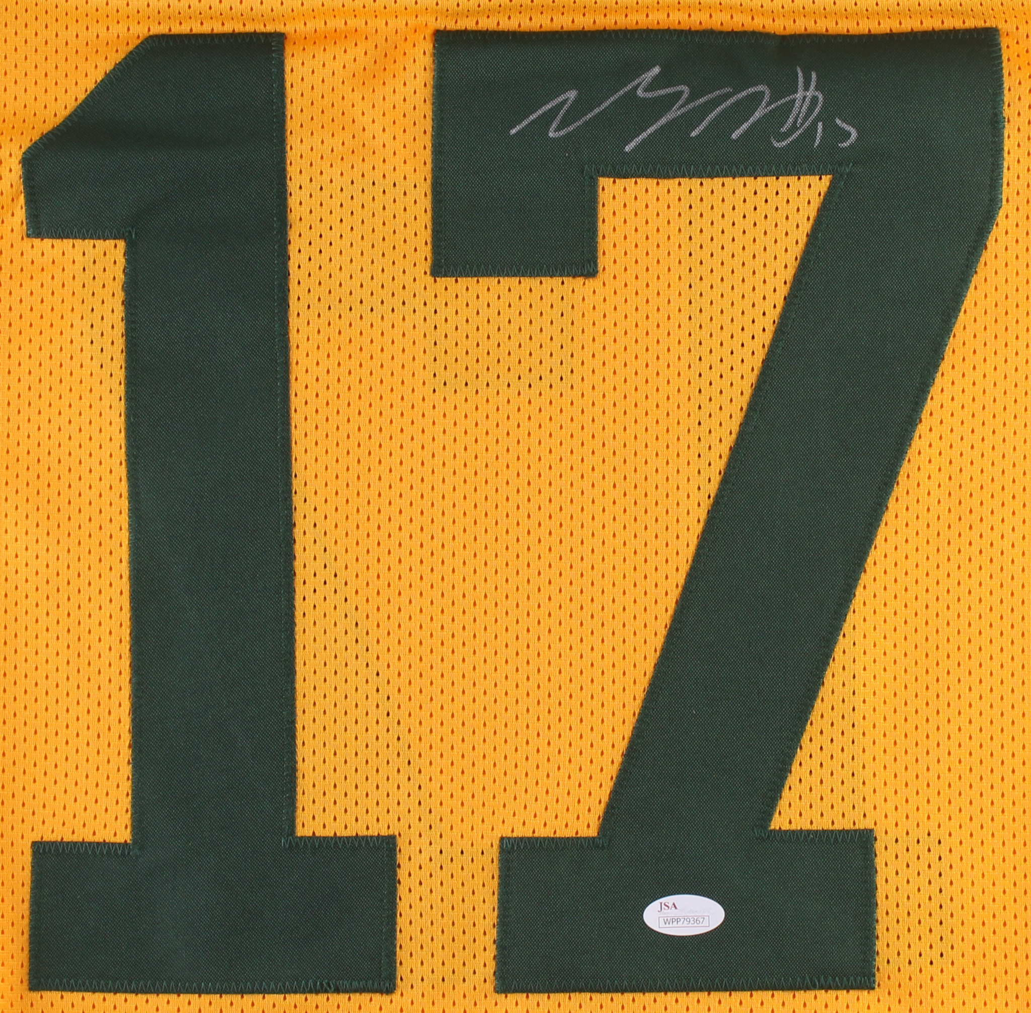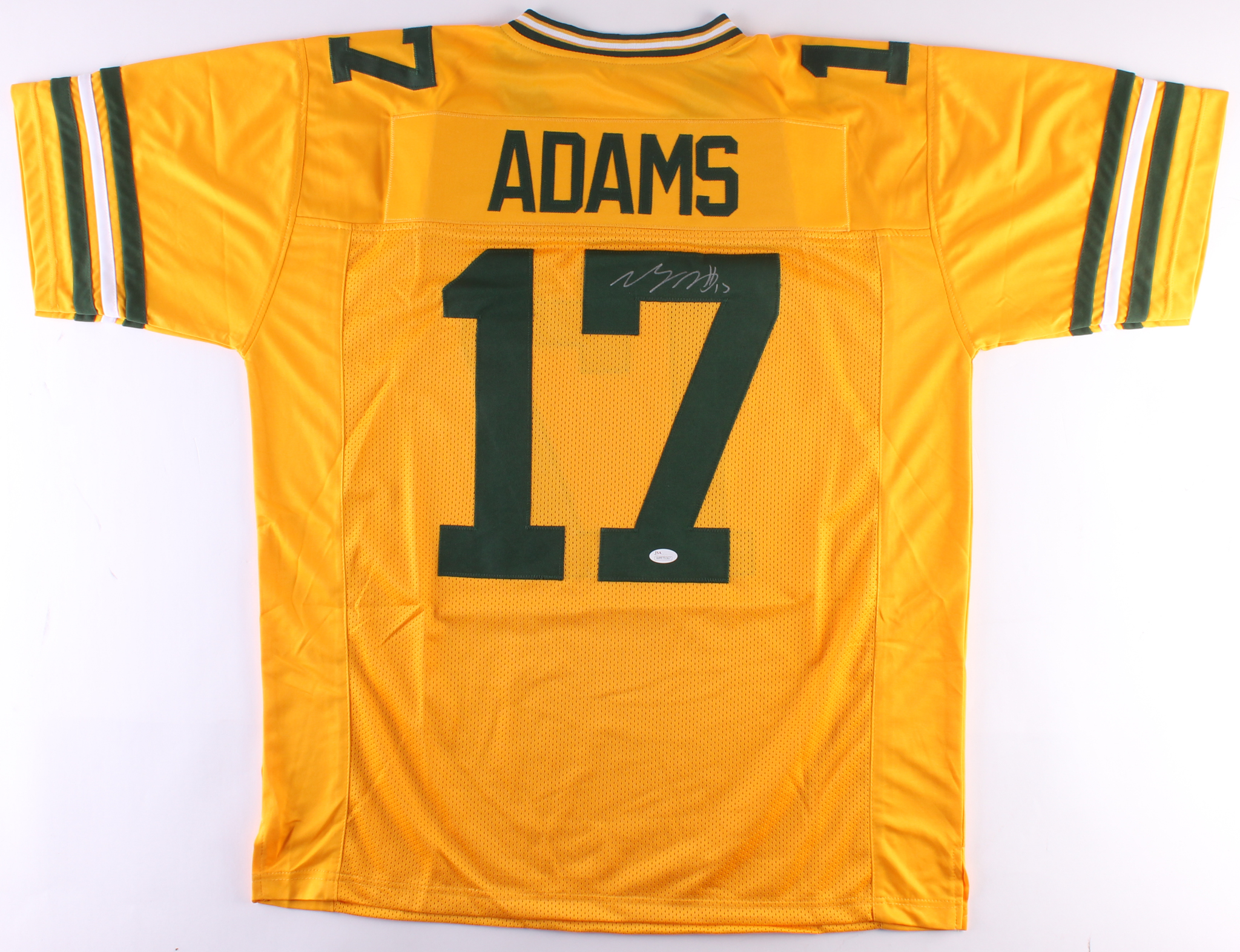 Custom on-field style jersey. Everything is sewn on, size XL. Hand-signed in silver paint pen by Davante Adams.