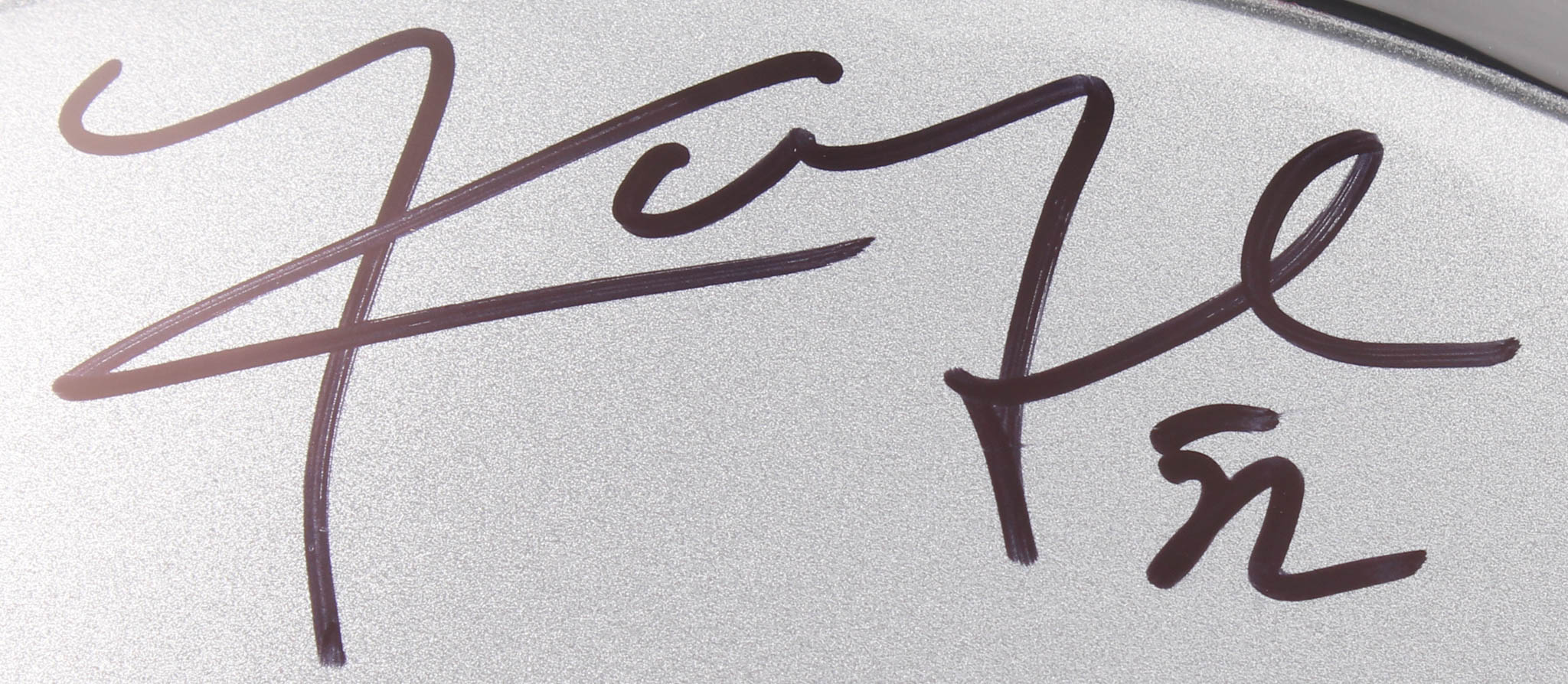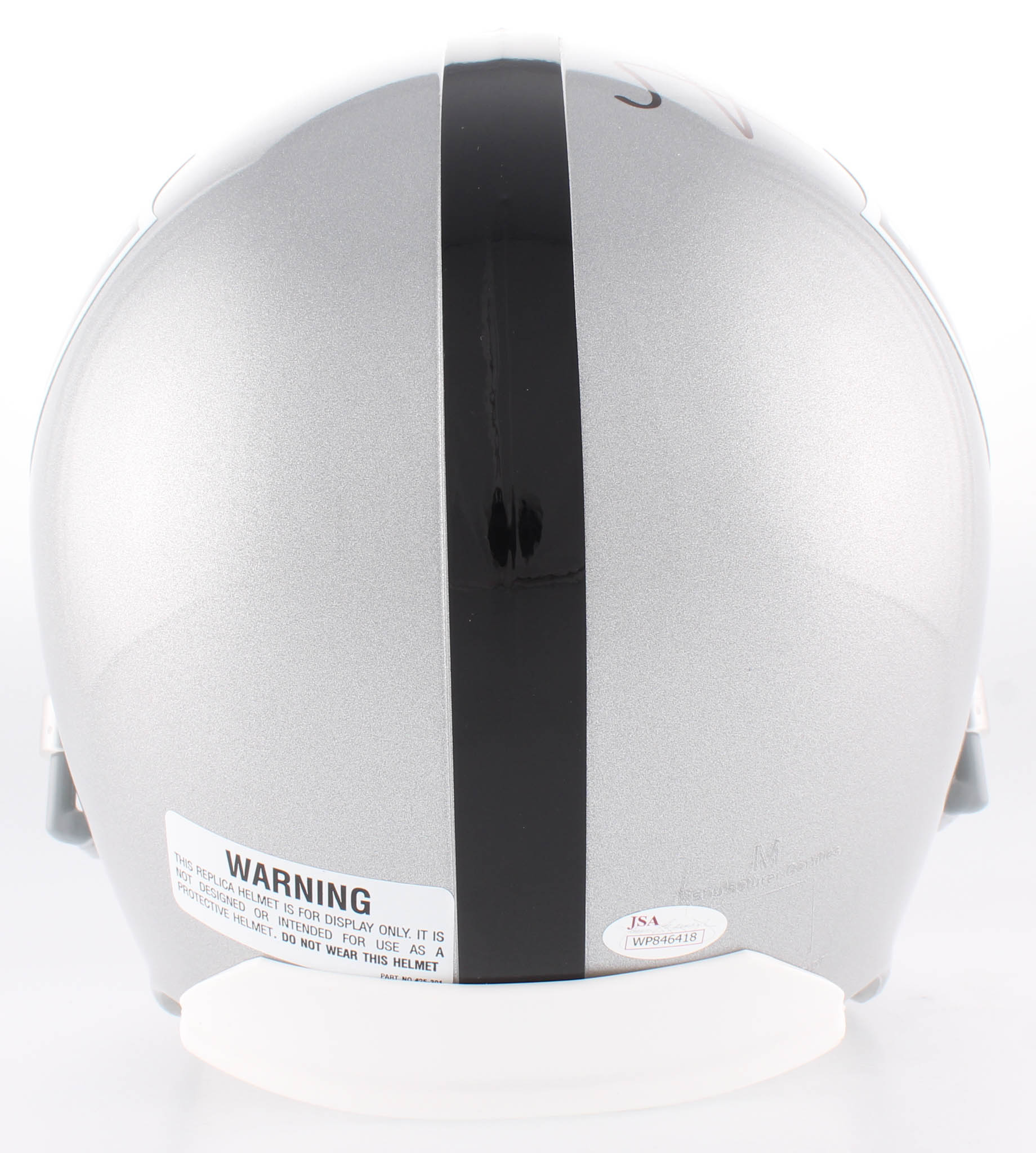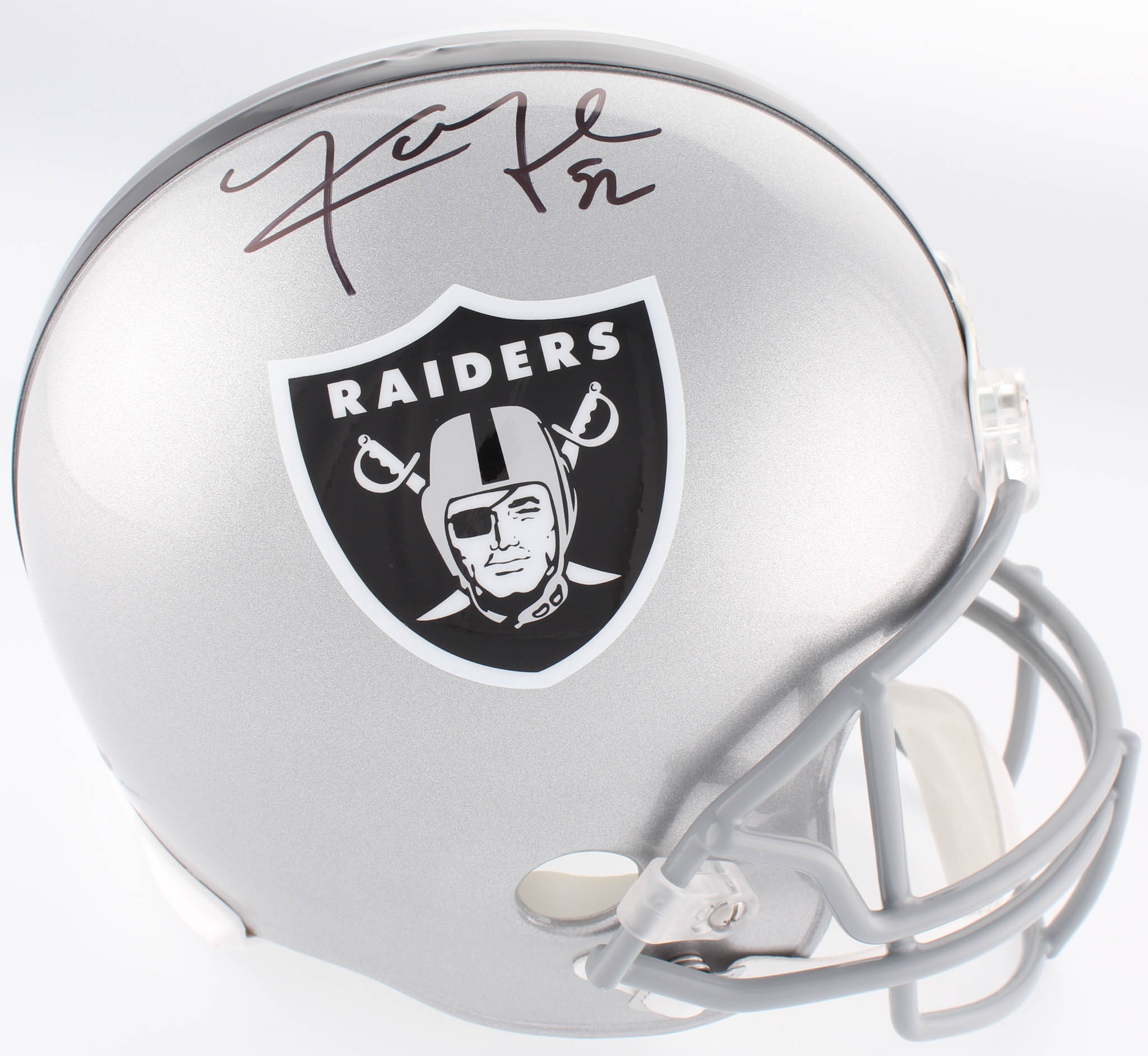Oakland Raiders full-size replica helmet. Hand-signed in black felt-tip pen by Khalil Mack.
