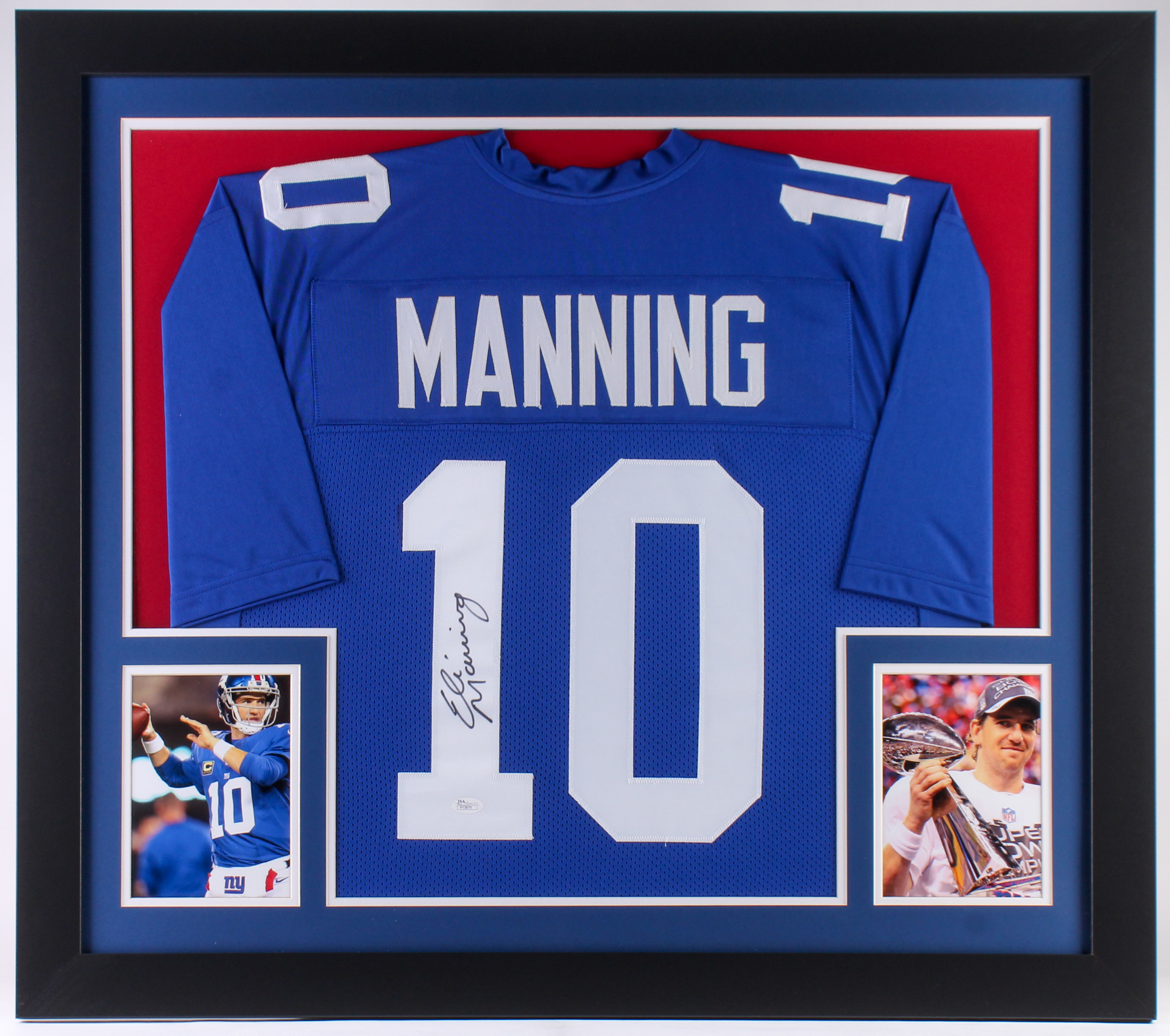 Eli Manning Signed Giants 31.5x35.5 Custom Framed Jersey (JSA COA)