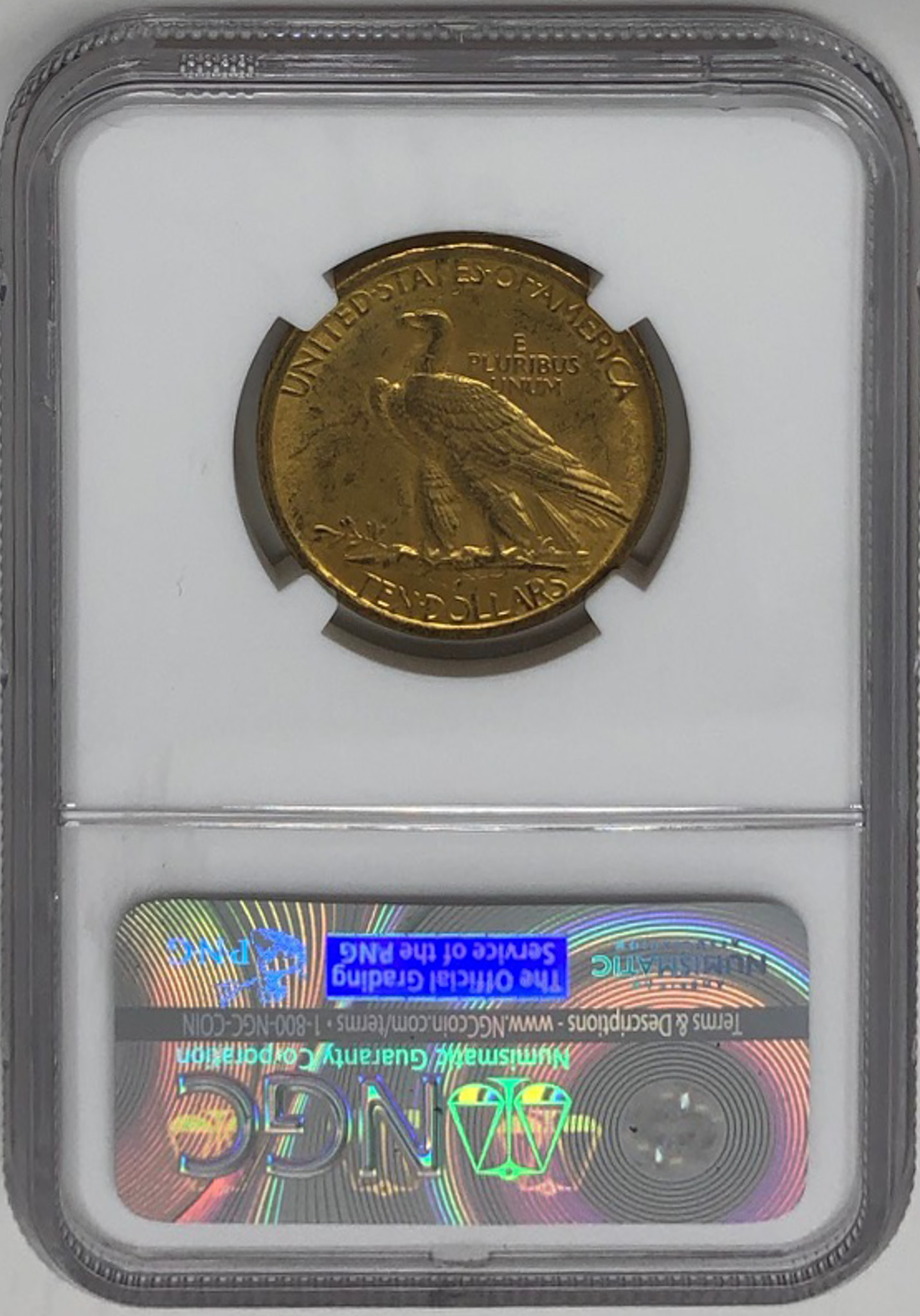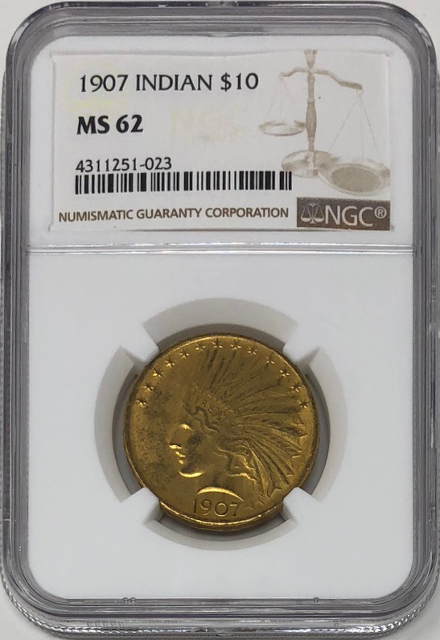 1907 $10 Ten Dollars Indian Head Eagle Gold Coin, No Motto (NGC MS 62)