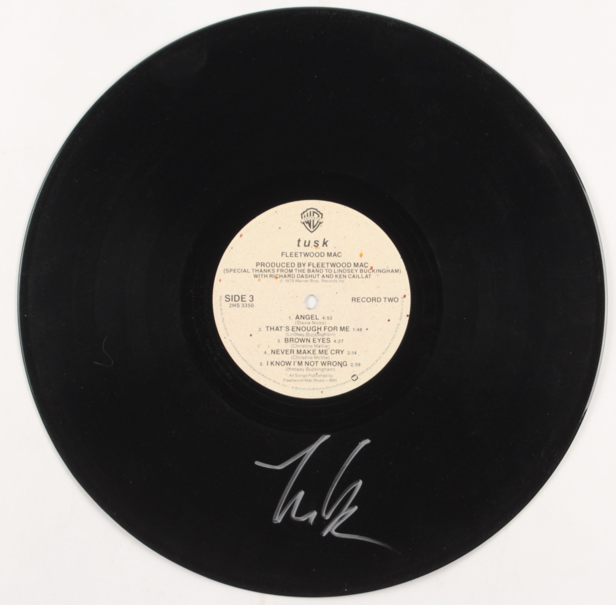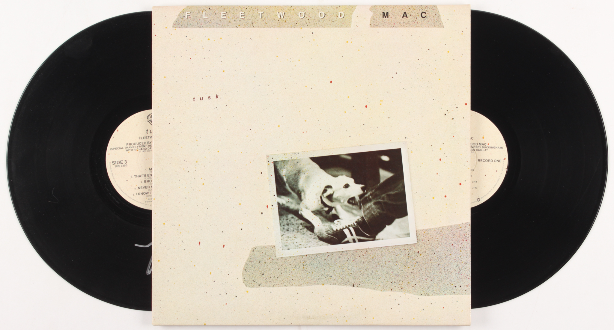 Fleetwood Mac "Tusk" vinyl record has been hand-signed in silver paint pen by Lindsey Buckingham. Please note, the vinyl records include the album cover.