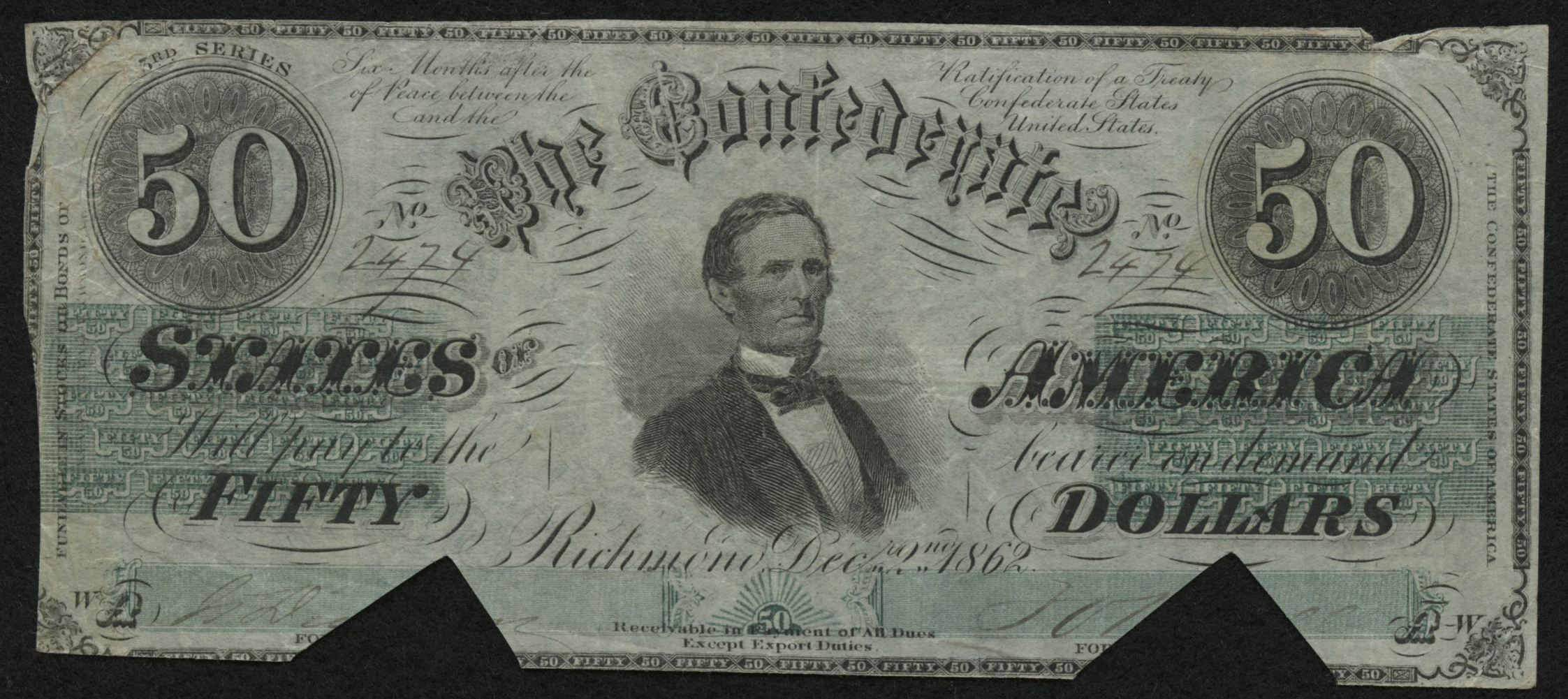 1862 $50 Fifty Dollars Confederate States of America Richmond CSA Bank Note Bill