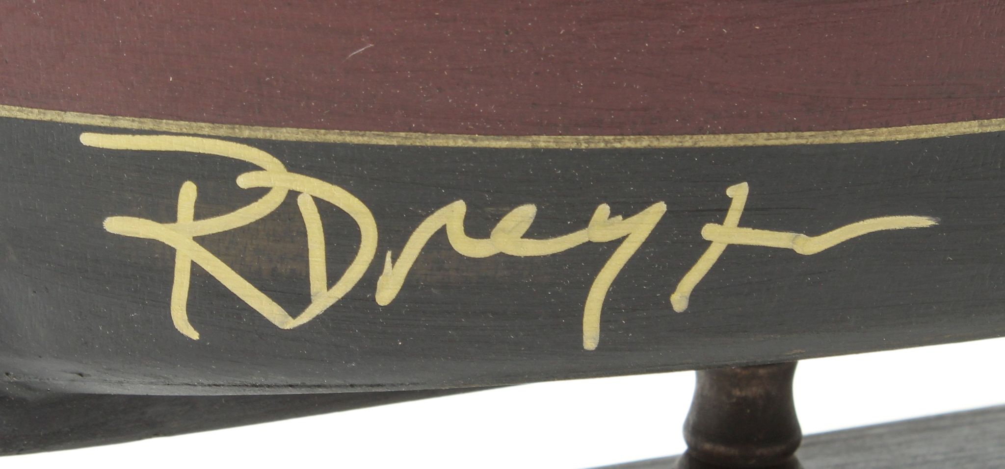 "Jaws" Orca model boat measures approximately 20" in length and has been hand-signed in gold paint pen by Richard Dreyfuss (Matt Hooper). Please note, the ship was designed to show wear as seen in the film, but the model also includes loose parts.