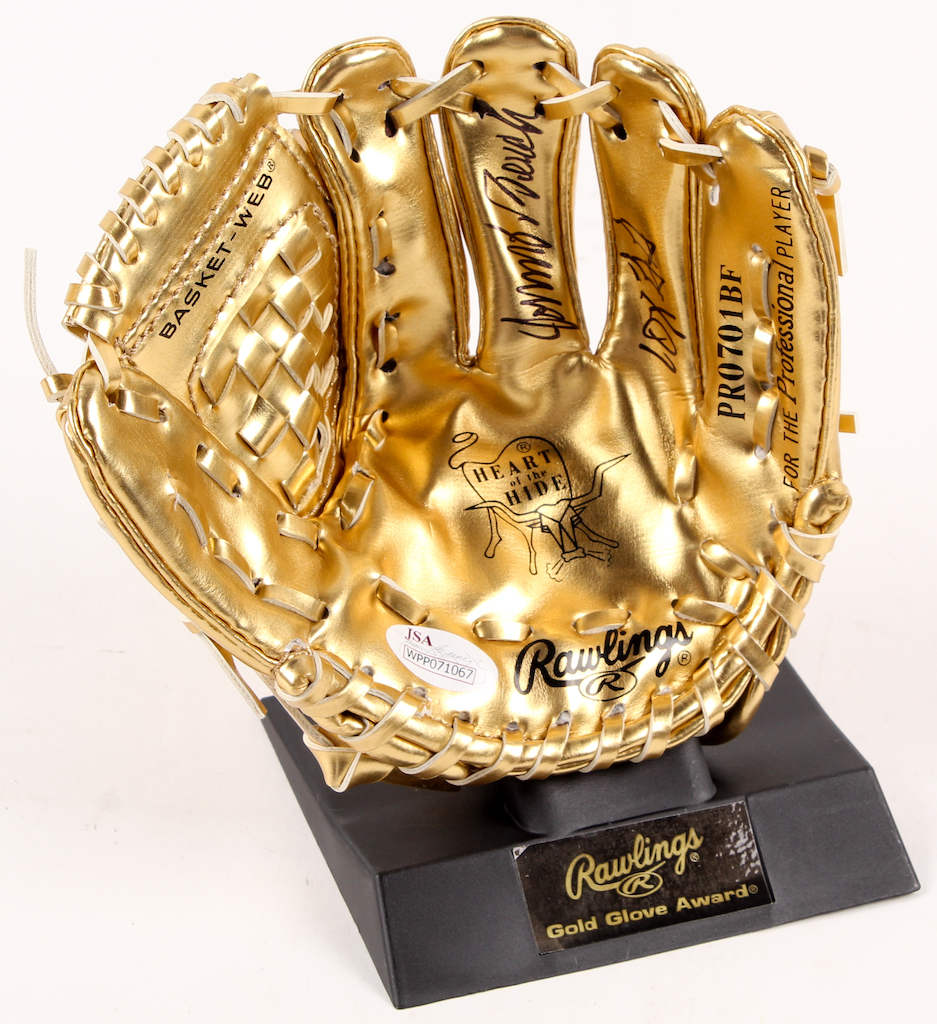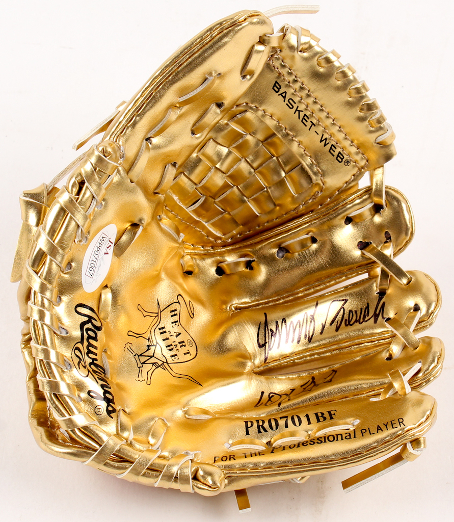 Johnny Bench Signed Rawlings Gold Mini-Baseball Glove Inscribed "10X GG" (JSA COA)