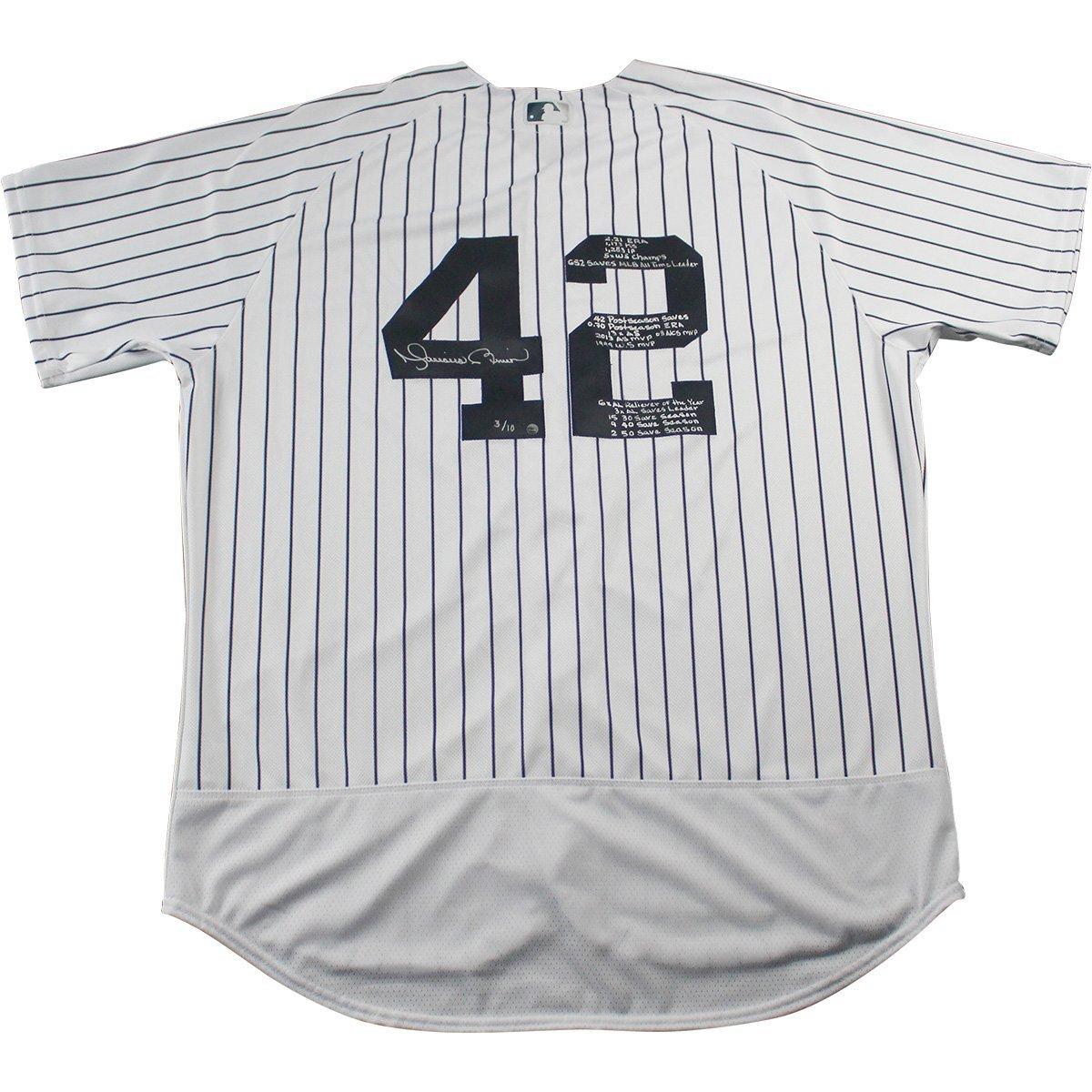 Authentic jersey hand-signed in silver paint pen by Mariano Rivera.