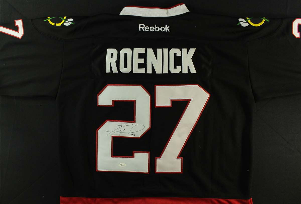 Reebok on-ice style jersey. Everything is sewn on, size 52. Hand-signed in black felt-tip pen by Jeremy Roenick. The autograph includes an official James Spence Authentication (JSA) hologram and matching COA for authenticity purposes.