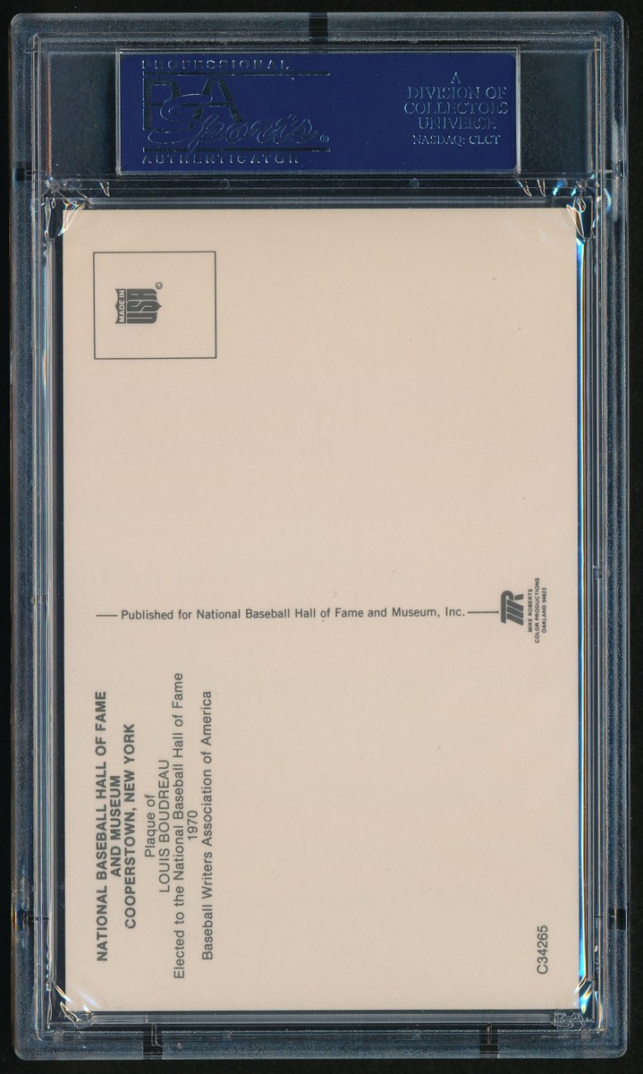 Lou Boudreau Signed Gold HOF Postcard (PSA Encapsulated)