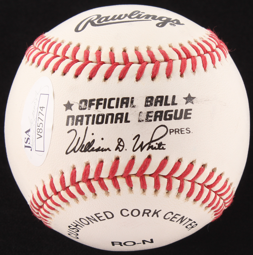 Rawlings Official National League baseball. Hand-signed in blue ink pen by Steve Carlton (Phillies, HOF).