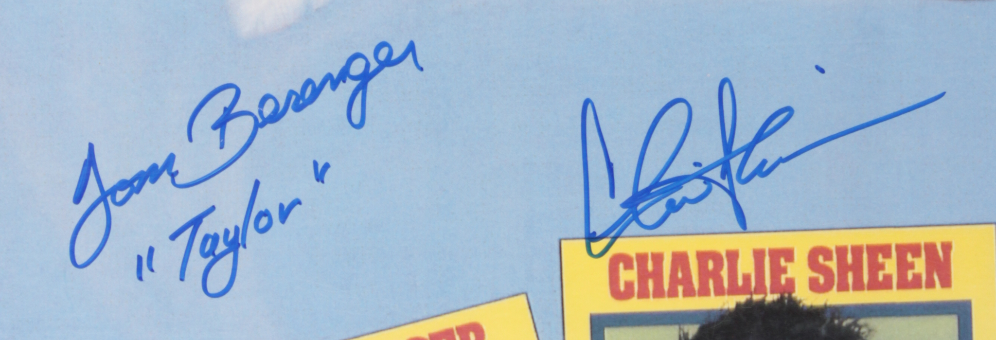 Poster measures 24" x 36" in size. Hand-signed and inscribed in blue felt-tip pen by Charlie Sheen, Tom Berenger and Corbin Bernsen.