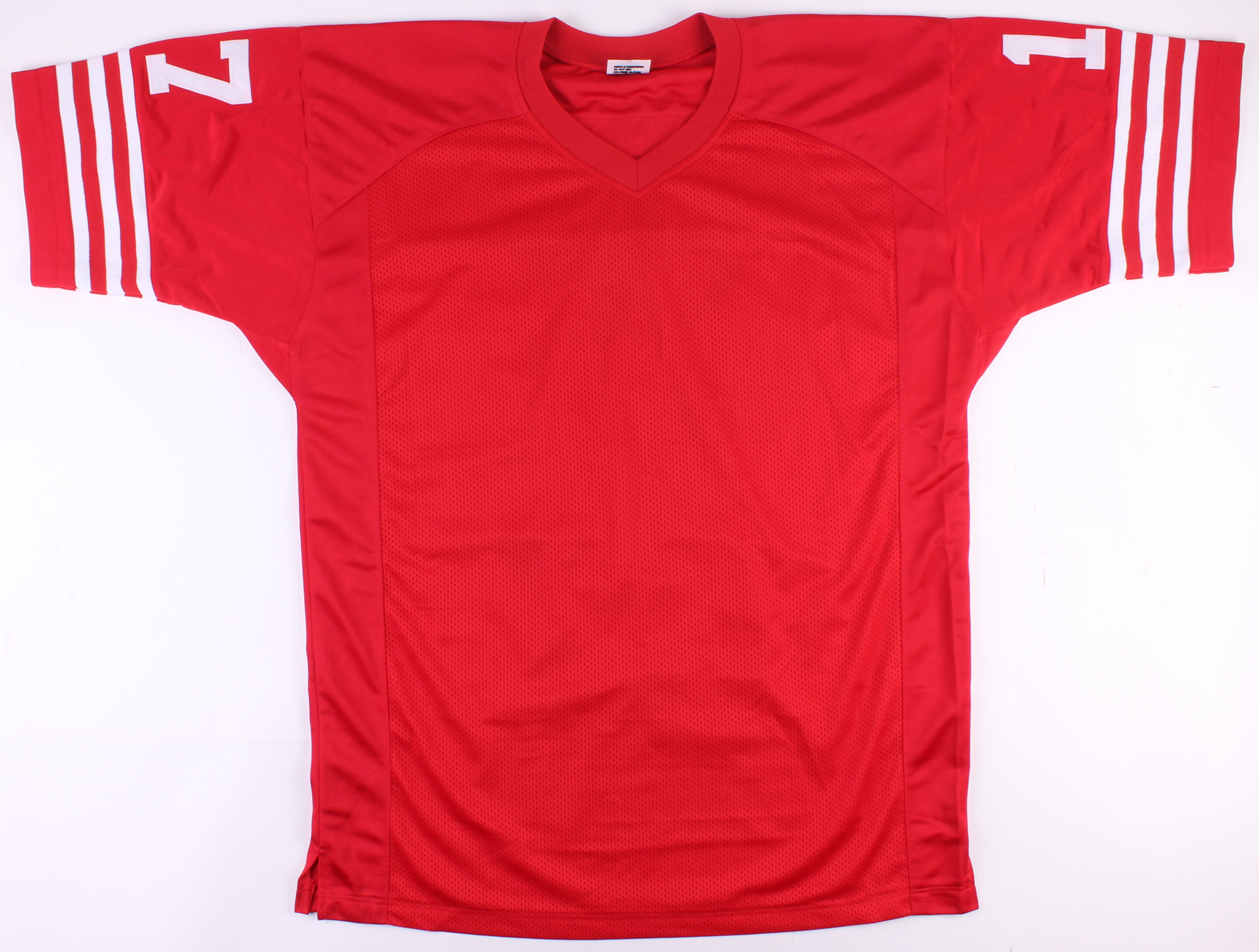 Custom on-field style jersey. Everything is sewn on, size XL. Hand-signed in black felt-tip pen by Joe Montana & Dwight Clark.