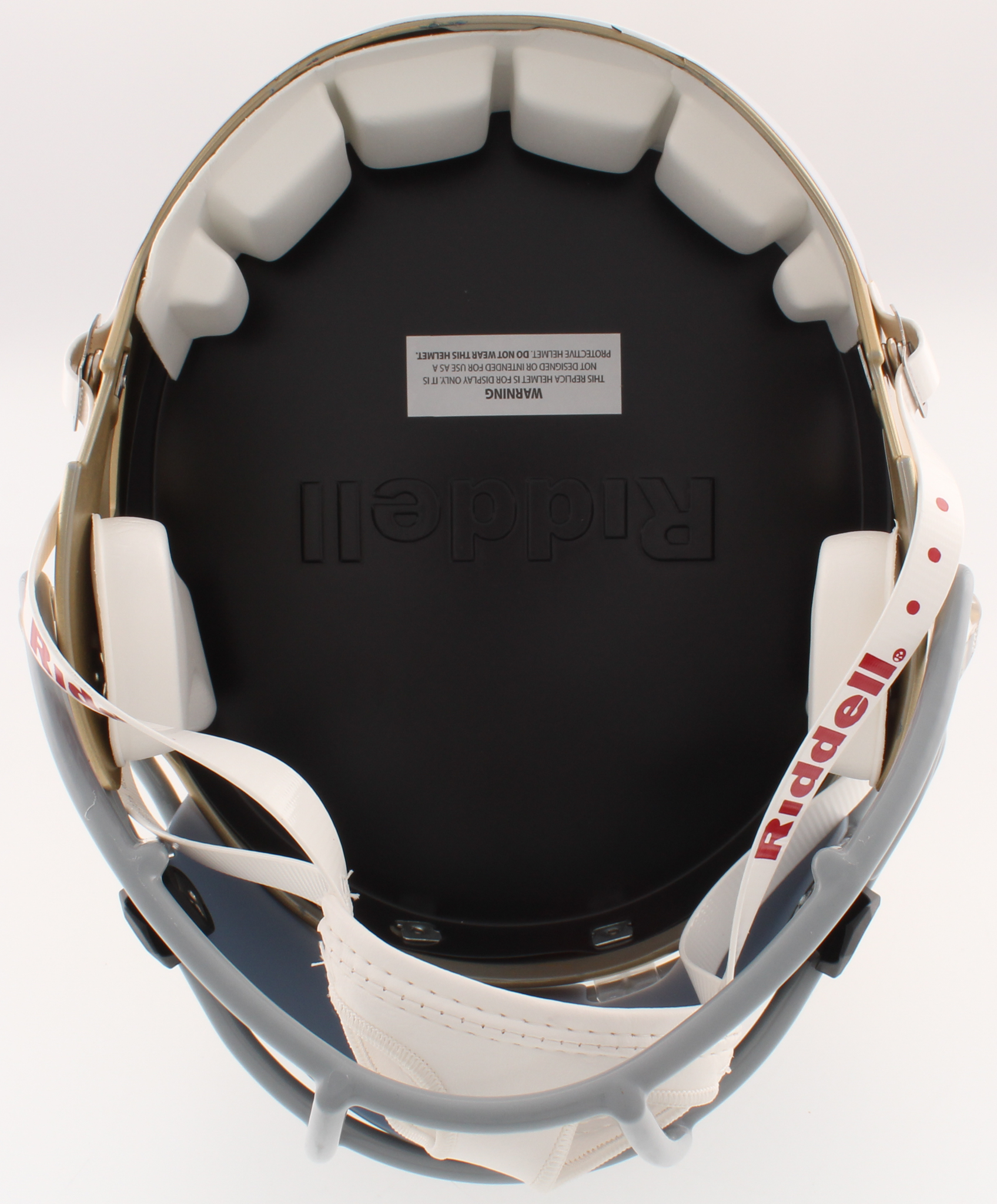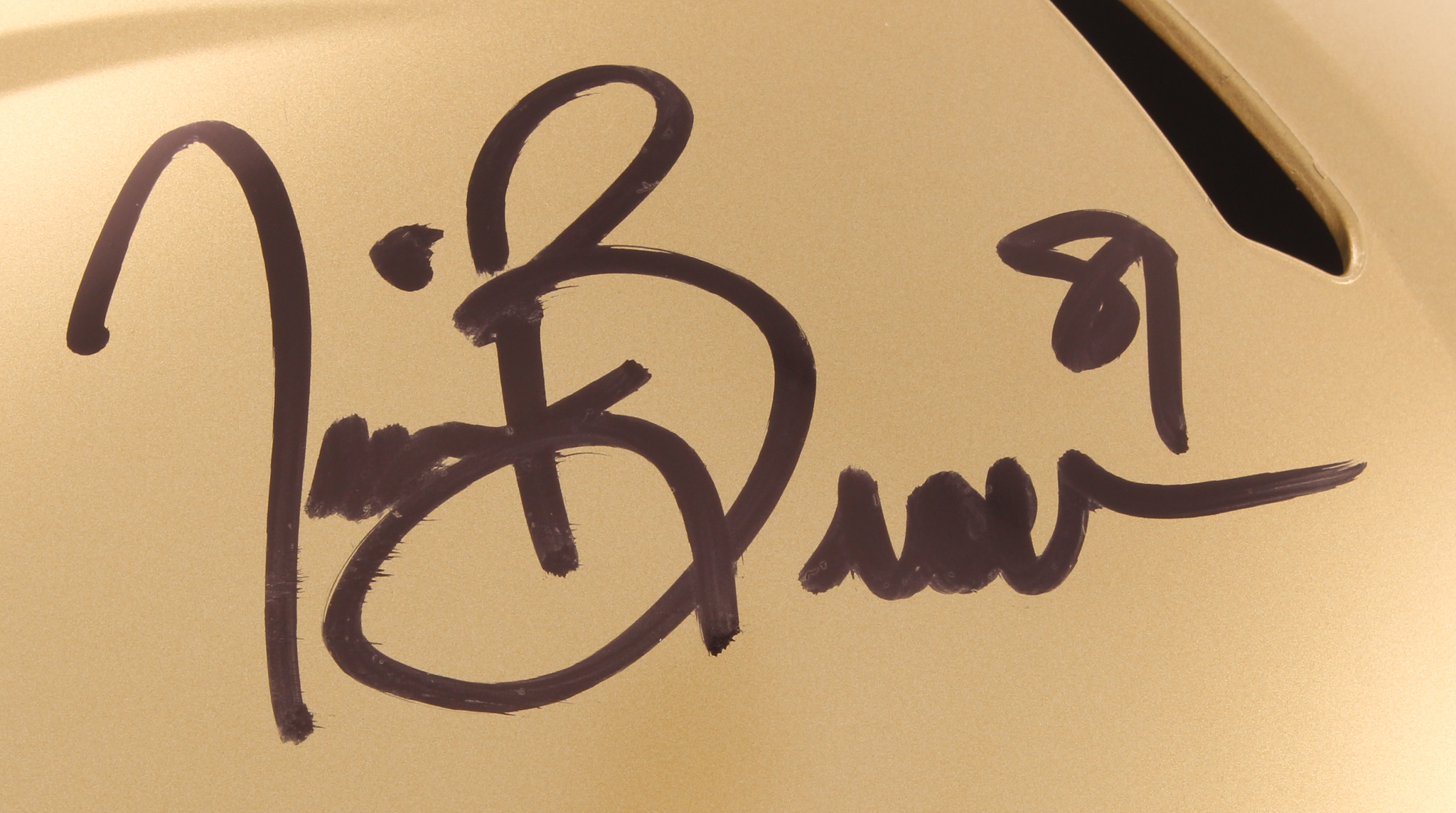Notre Dame Fighting Irish full-size replica speed helmet. Hand-signed in black felt tip pen by Tim Brown (HOF).